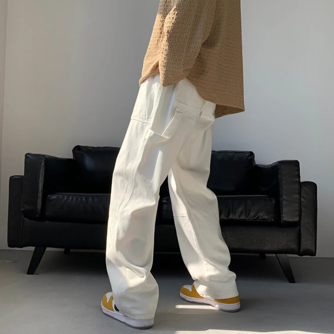 -Pantalon Jean Droit Denim Large Noir Streetwear.