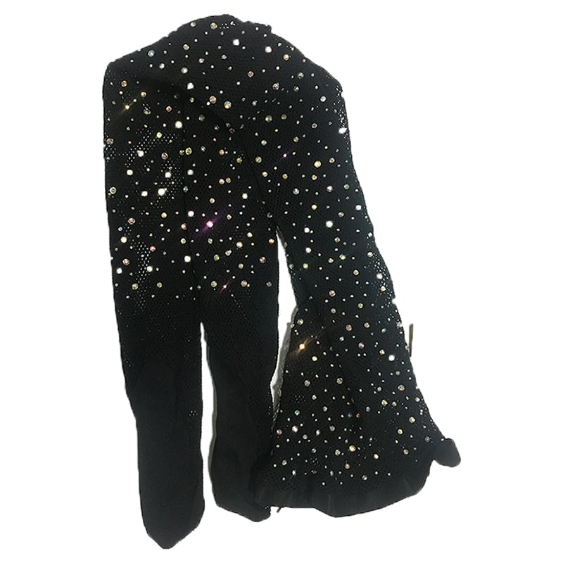 Collants pour femmes sexy en strass Collants pour salle de bal et concours de danse latine Collants en fil dur élastiques et brillants Collants professionnels en résille