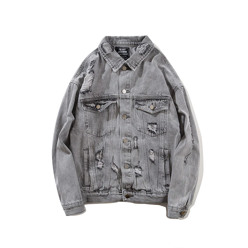 -Veste en jean denim Streetwear Gris