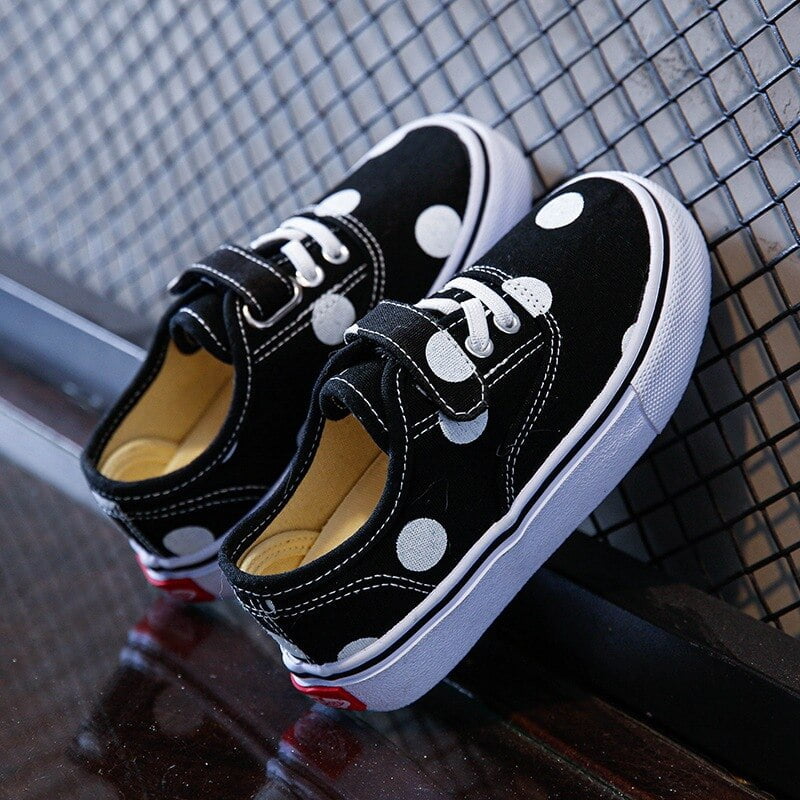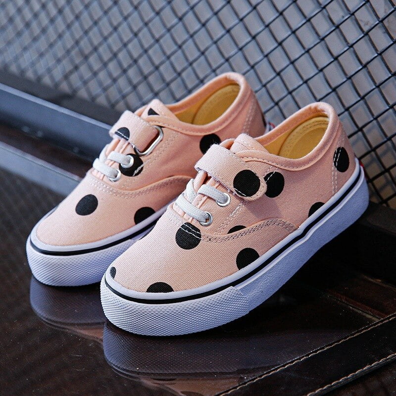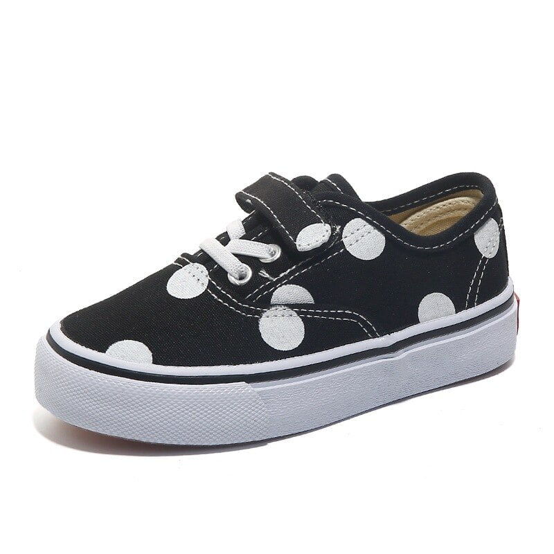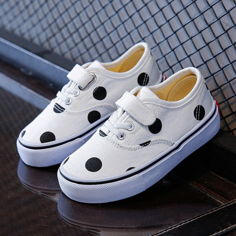 🎉 Découvrez nos chaussures basses en toile pour enfants, ornées de motifs à pois qui feront le bonheur de vos petits bouts. 🚀 Ces chaussures sont l’accessoire idéal pour ajouter une touche d’originalité et de gaieté à la tenue de votre enfant, tout en garantissant son confort au quotidien.