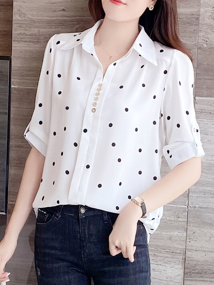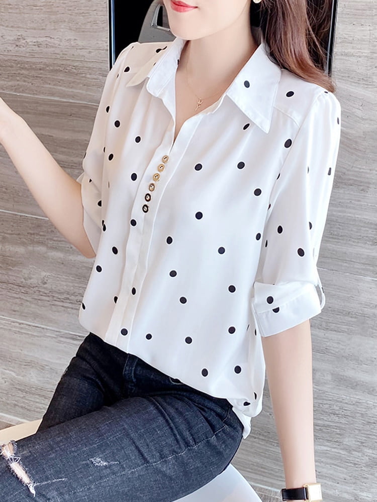 Chemise Été Femmes Pois Boutons – Mode Coréenne