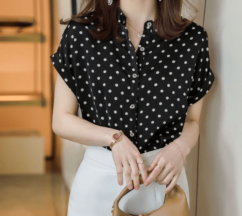 Notre chemise à pois pour femme est fabriquée à partir de matériaux de haute qualité pour assurer une durabilité maximale. Elle est dotée de manches chauve-souris, ajoutant une touche de sophistication à votre look. 🌟 Le motif à pois est un choix classique qui ne se démode jamais, parfait pour toutes les occasions, que ce soit pour un mariage, une cérémonie ou une sortie décontractée. 💃