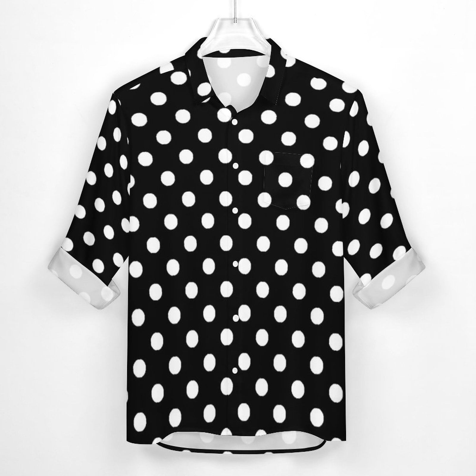 Découvrez notre chemise à manches longues à pois noirs et blancs pour hommes, une pièce de vêtement qui allie parfaitement le style rétro avec une touche moderne. 🎩👔 Cette chemise décontractée est idéale pour ceux qui cherchent à ajouter du caractère à leur garde-robe. Son motif classique de taches donne un aspect vintage, tout en restant dans la tendance actuelle.
