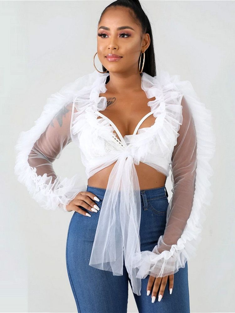 🌟 Découvrez la chemise en maille transparente à volants, manches longues, à lacets 🌟