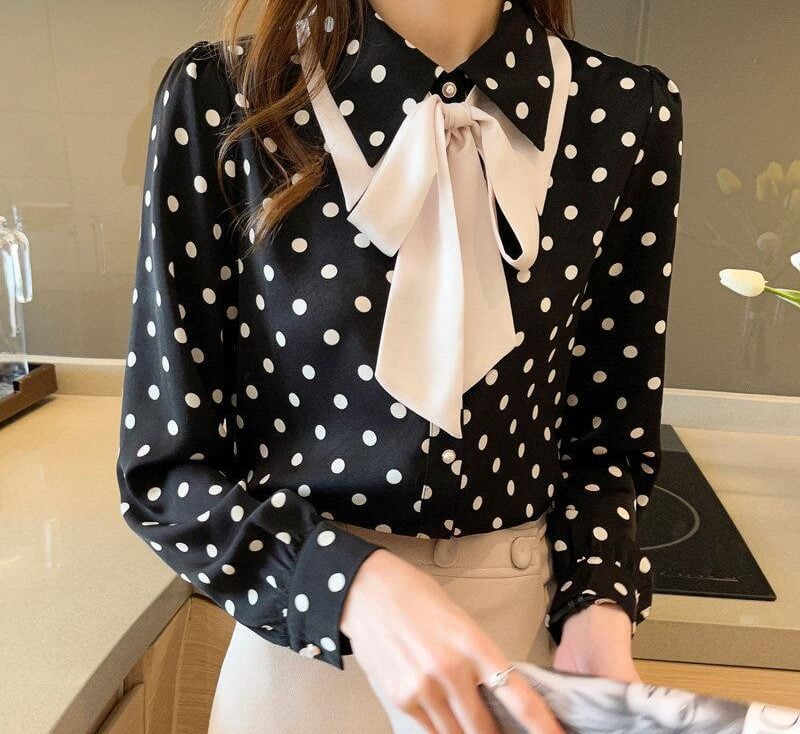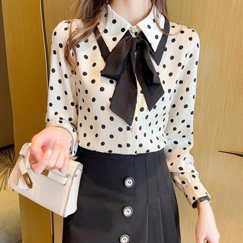 « Vous méritez le meilleur! »😘 Alors pourquoi se contenter moins quand on peut avoir le luxe abordable? Nos Chemise Mousseline Elégante Mode Chic Pois est exactement ce dont vous avez besoin pour briller comme jamais auparavant. »