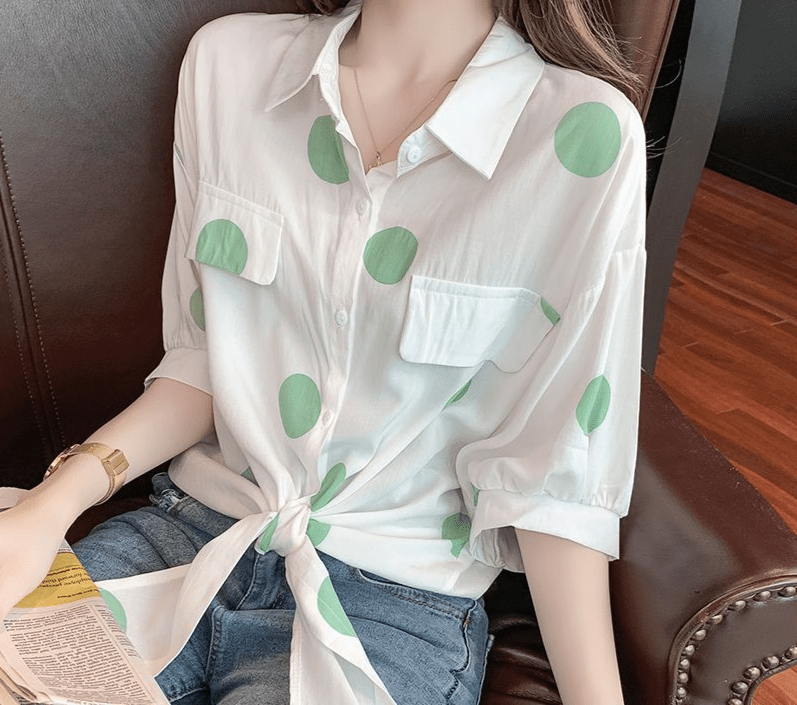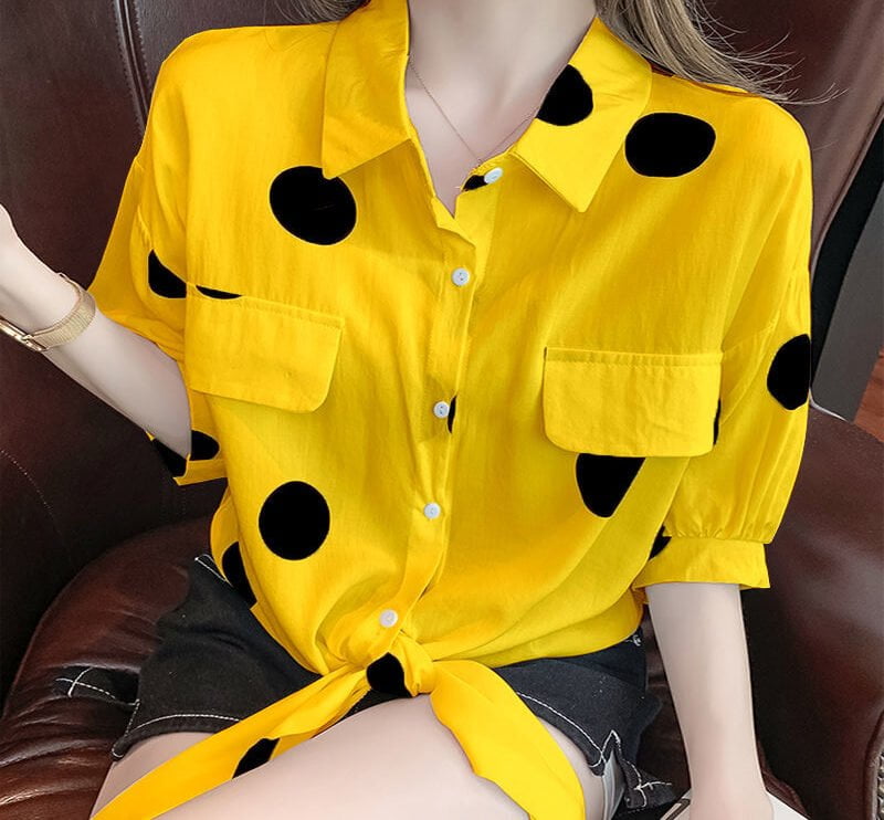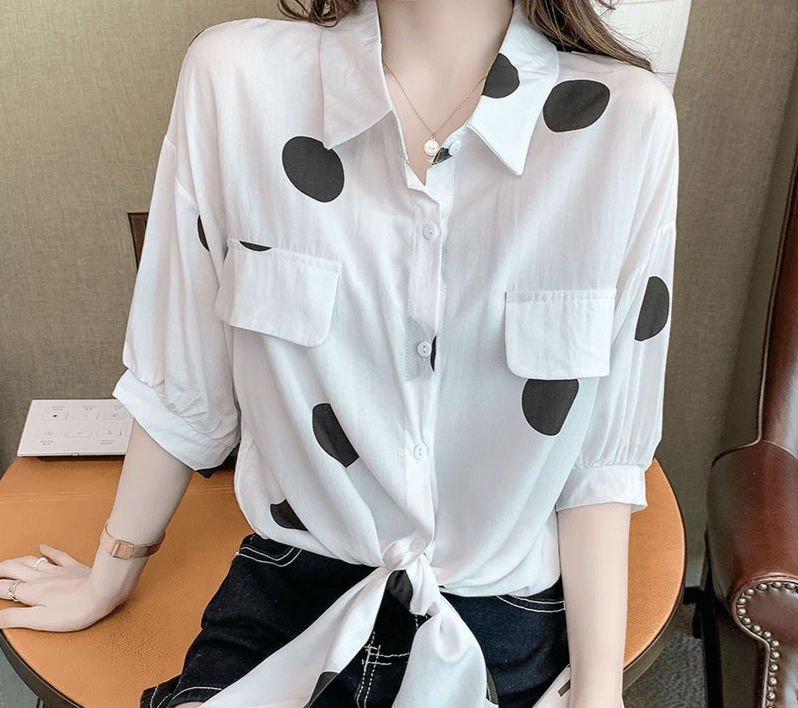 N’hésitez pas! Ajoutez cette pièce indispensable à votre garde-robe dès maintenant! Vous méritez ce petit luxe quotidien qu’est notre Chemise Chic Pour Femmes Avec Motifs À Pois!