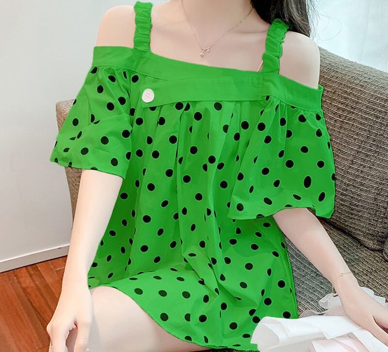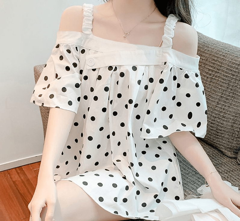 Le chemisier imprimé à pois, épaules dénudées : un incontournable de votre garde-robe