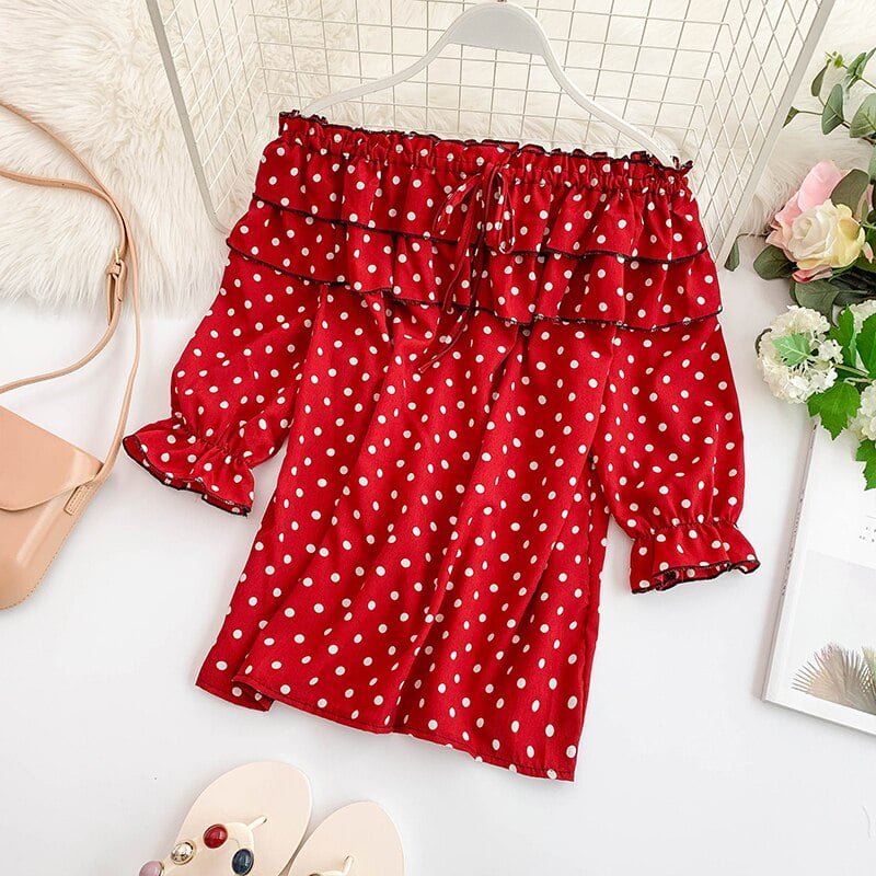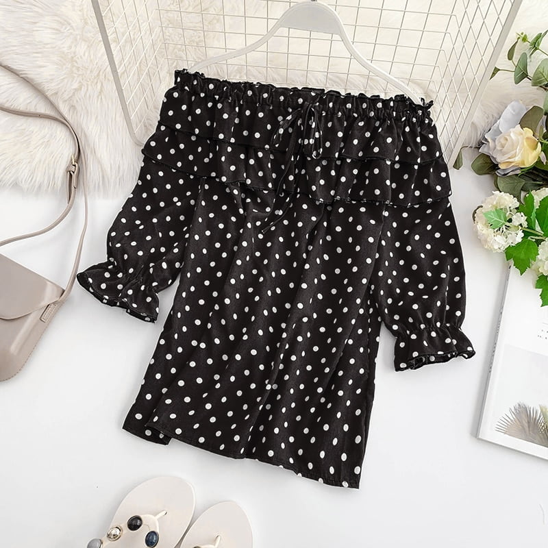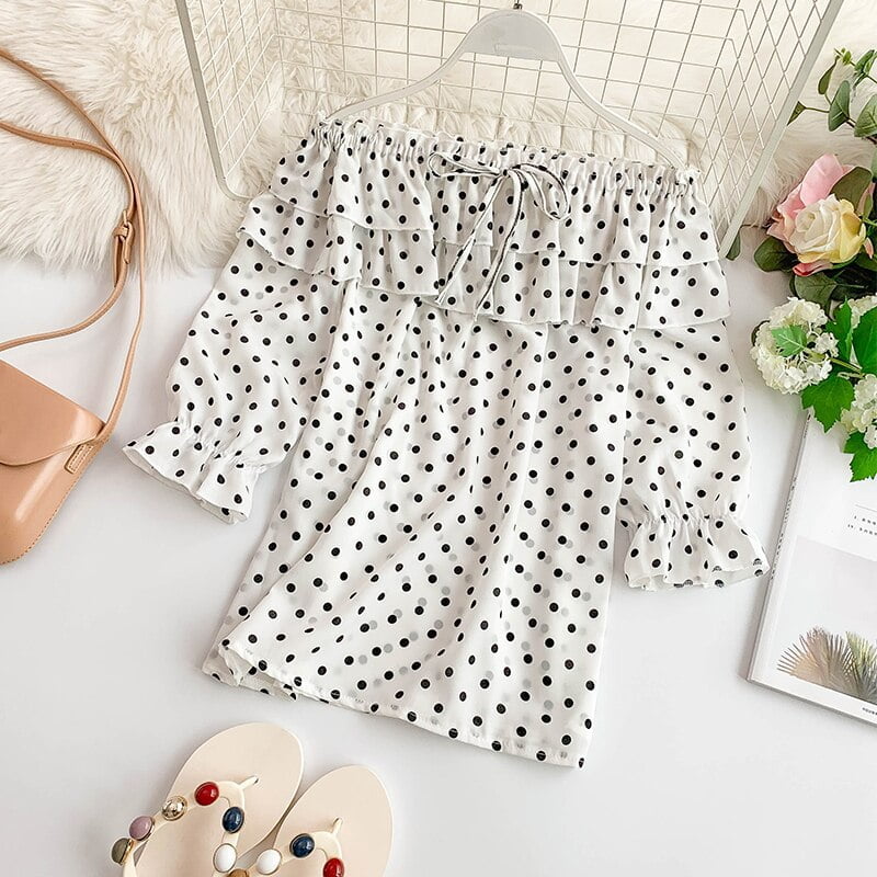 👑 Vous êtes unique et vous méritez le meilleur. Alors pourquoi ne pas vous offrir ce chemisier à pois qui saura vous faire sentir belle et confiante ?