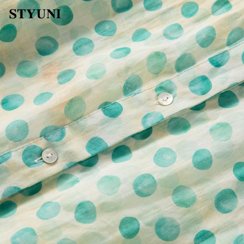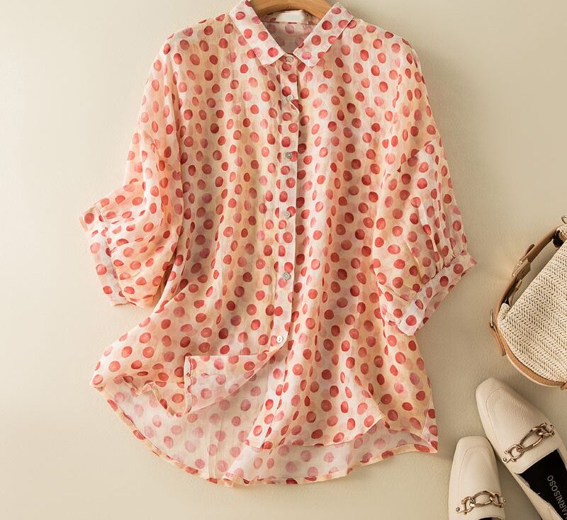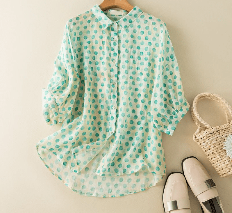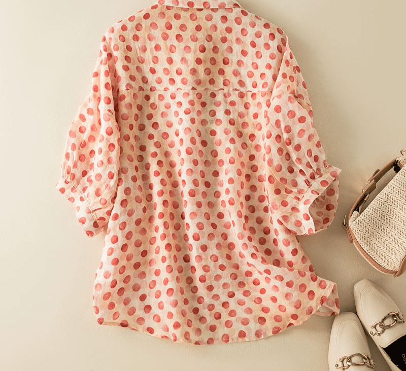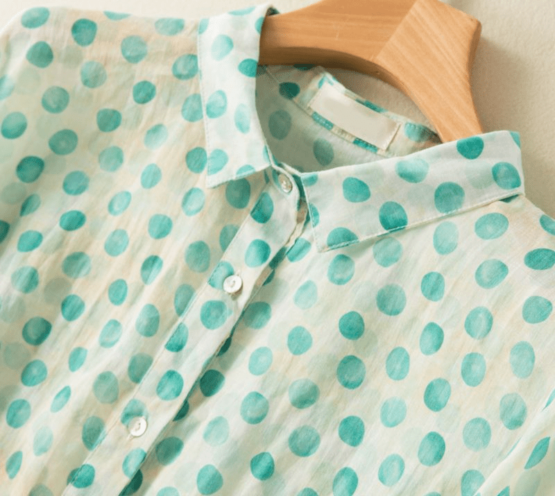 Un chemisier en lin imprimé à pois pour femmes : l’élégance au naturel