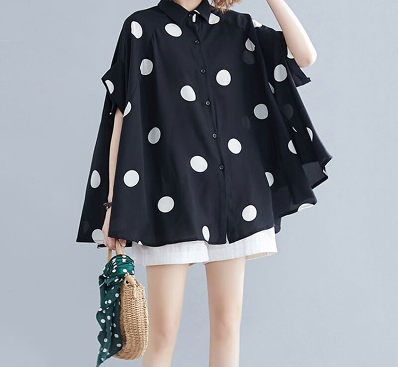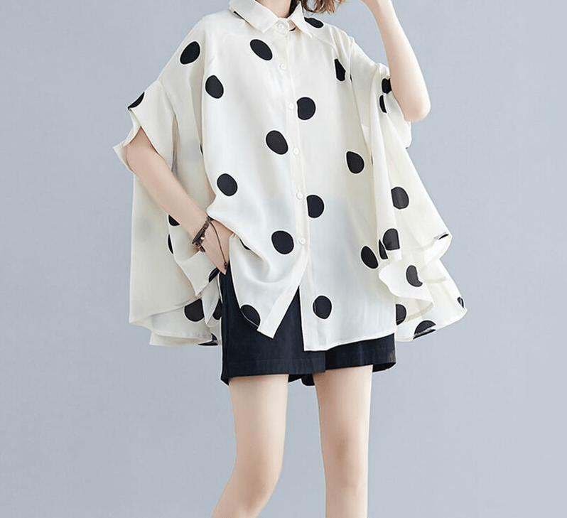 Notre chemisier est fabriqué en mousseline de haute qualité, un tissu léger et respirant qui vous assure un confort optimal tout au long de la journée. Il présente un motif à pois, un design classique qui ne se démode jamais. Avec ses manches courtes, ce chemisier est parfait pour les journées chaudes d’été. 🌞