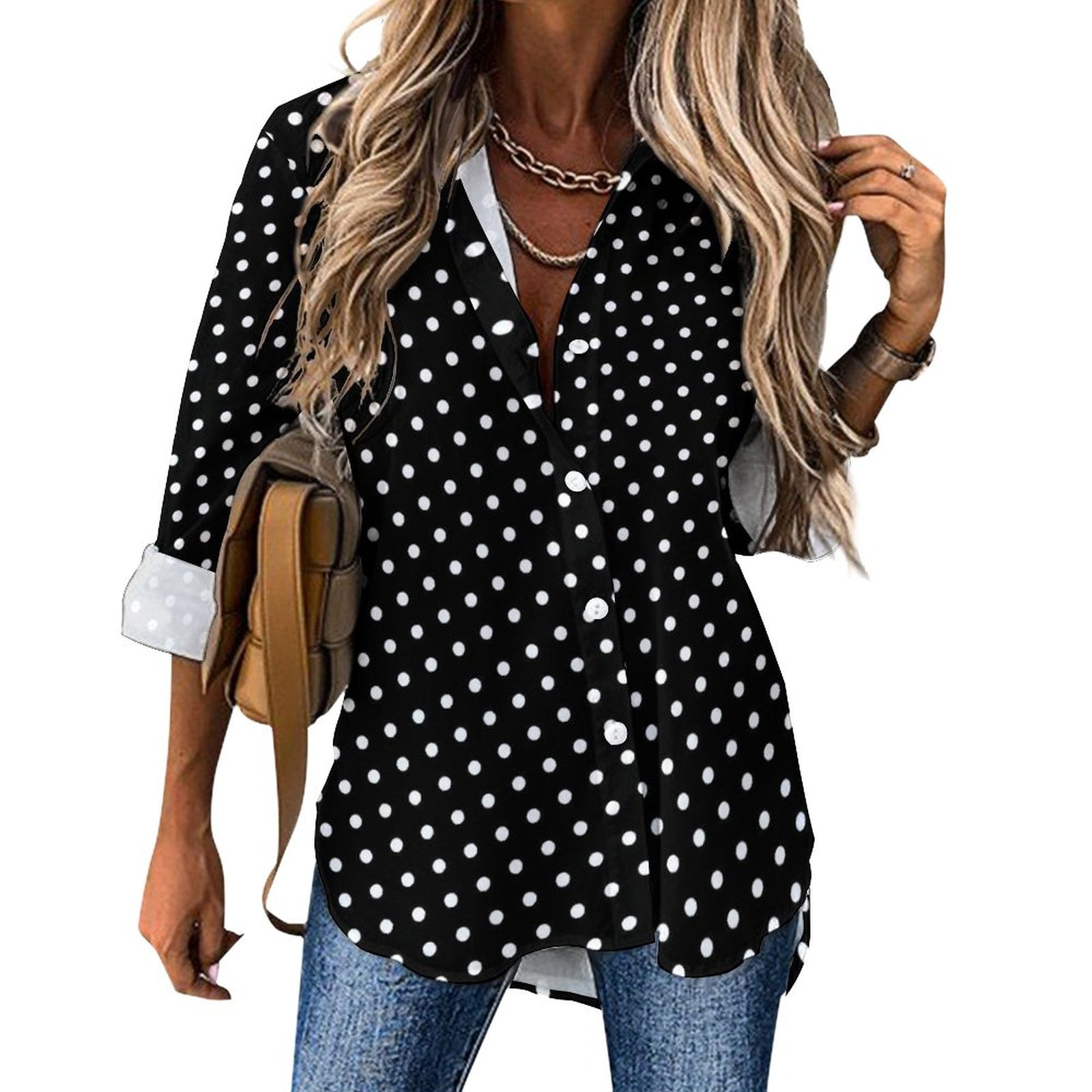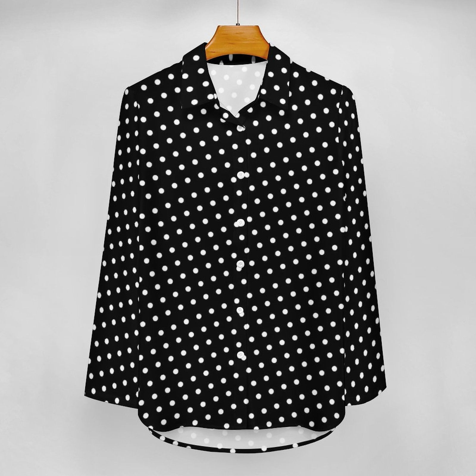 Découvrez notre chemisier à manches longues imprimé rétro pour femmes, une pièce unique qui allie élégance et originalité. 🎀 Avec son design vintage, ce chemisier est l’incarnation parfaite du style streetwear chic. Son motif à pois noir sur fond blanc apporte une touche de sophistication intemporelle.