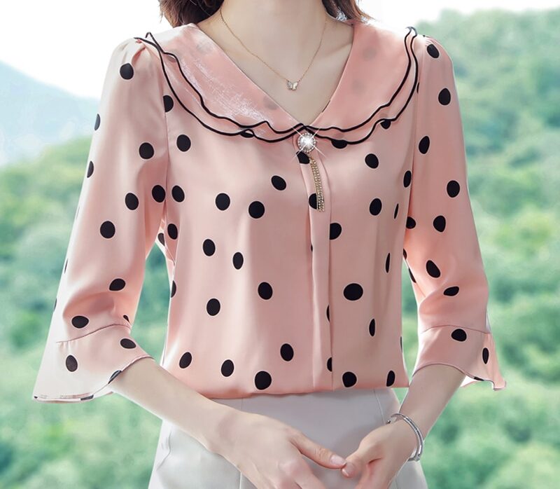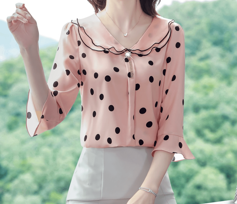 Caractéristiques du Chemisier Mousseline Pois Manches Évasées Décontracté