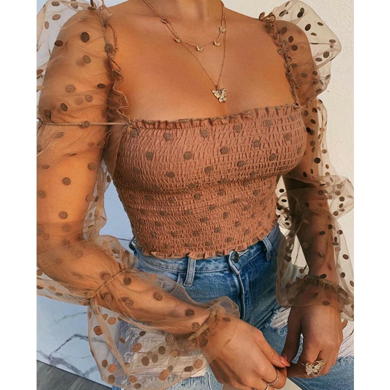 Notre chemise élastique se distingue par son style unique qui mêle tendances actuelles et touches vintage 🕰️🔮 . Son motif à pois donne un air rétro-chic tandis que sa transparence apporte modernité et sensualité 💃💋 . Elle convient parfaitement aux femmes qui aiment sortir des sentiers battus tout en restant élégantes.