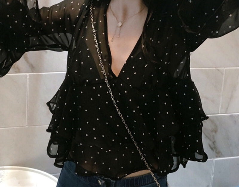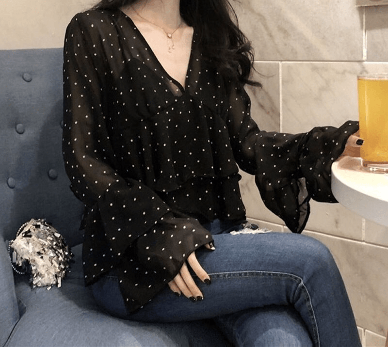 Découvrez notre chemisier à volants à manches longues pour femmes, un véritable bijou de la mode coréenne. Conçu en mousseline de soie délicate, ce chemisier est orné de pois assortis qui lui confèrent un charme indéniable. Idéal pour les saisons printemps et été, il apporte une touche rafraîchissante et élégante à votre garde-robe.