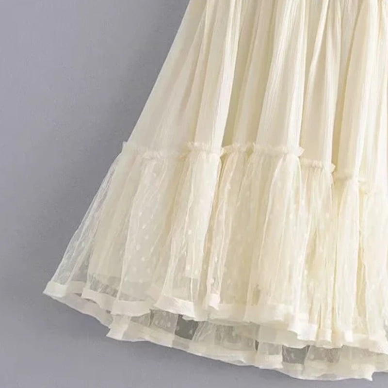 La robe est conçue pour être à la fois décontractée et élégante, ce qui en fait un choix idéal pour les vacances à la plage ou les sorties estivales. La broderie de marguerites vintage ajoute une touche de sophistication à cette robe d’été. 😊