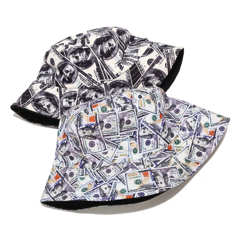 -Chapeau Bob Noir Imprimé Réversible Streetwear