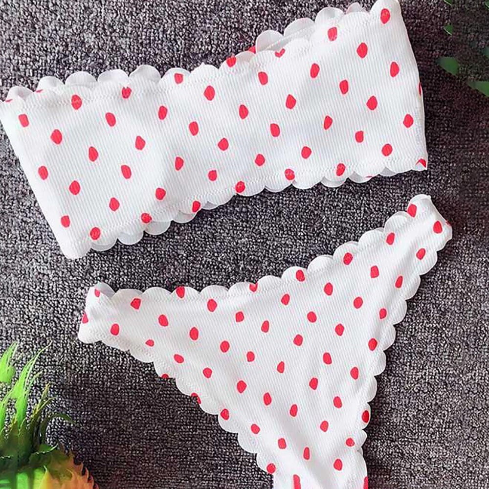 À qui est destiné cet ensemble de maillot de bain à pois pour femme?