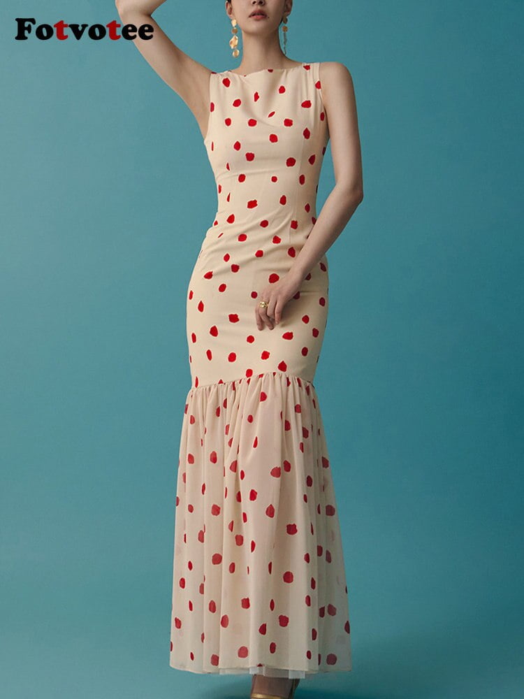 La Robe Longue Femme Élégance Pois Chic par Fotvotee : un choix de distinction