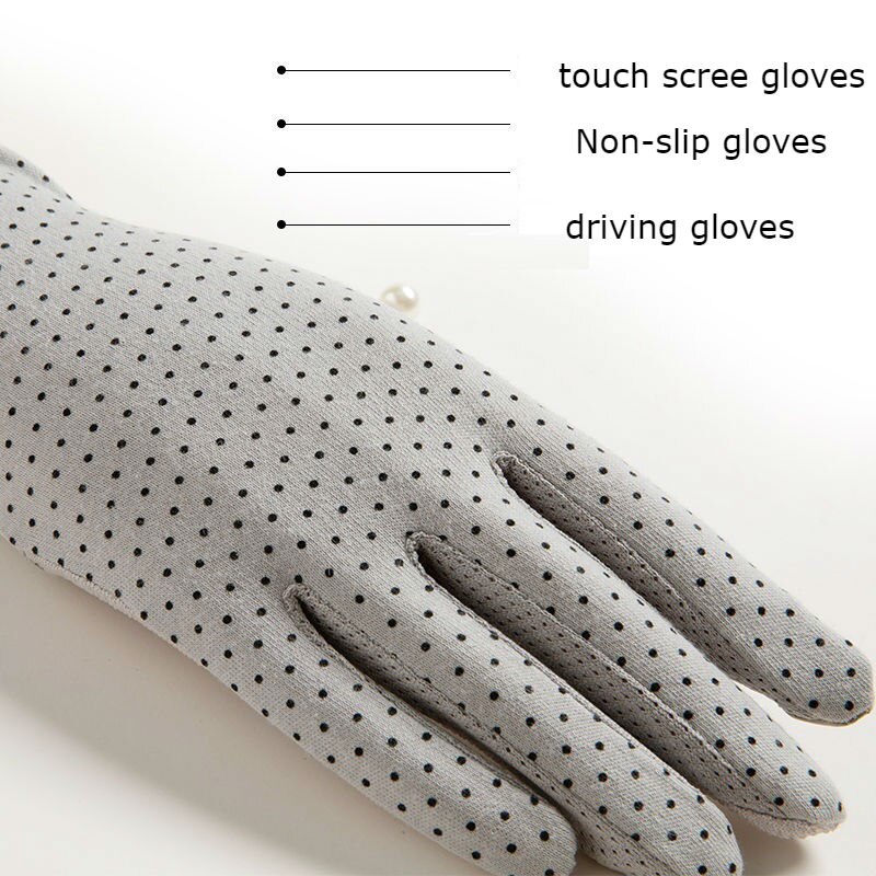 – Gants de protection solaire en dentelle à pois en pur coton pour femmes