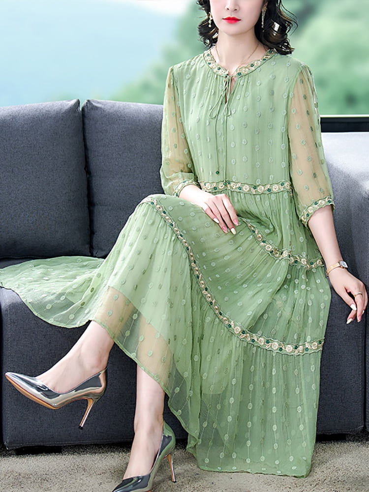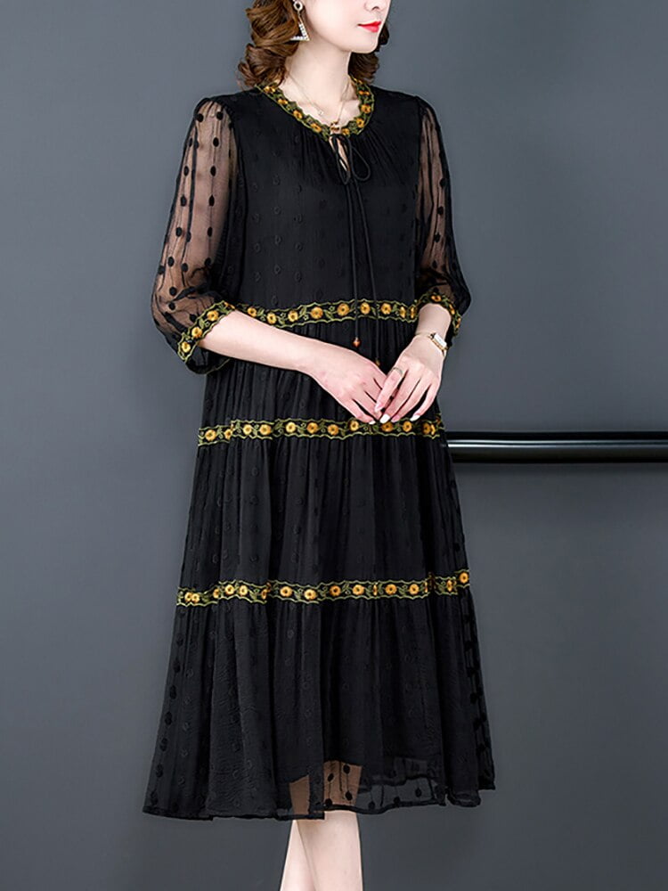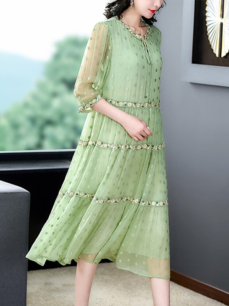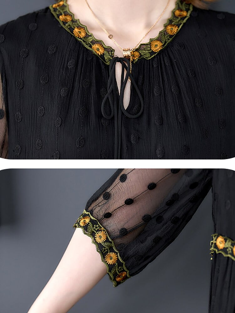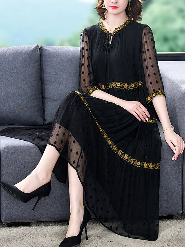 Lorsqu’il s’agit de mode estivale, ce vêtement surpasse tous les autres grâce à son design unique combinant élégamment la broderie détaillée avec des motifs à pois tendances. Que vous assistiez à un mariage ou que vous profitiez simplement d’une journée ensoleillée au parc, cette pièce sera votre alliée idéale! 👗💖