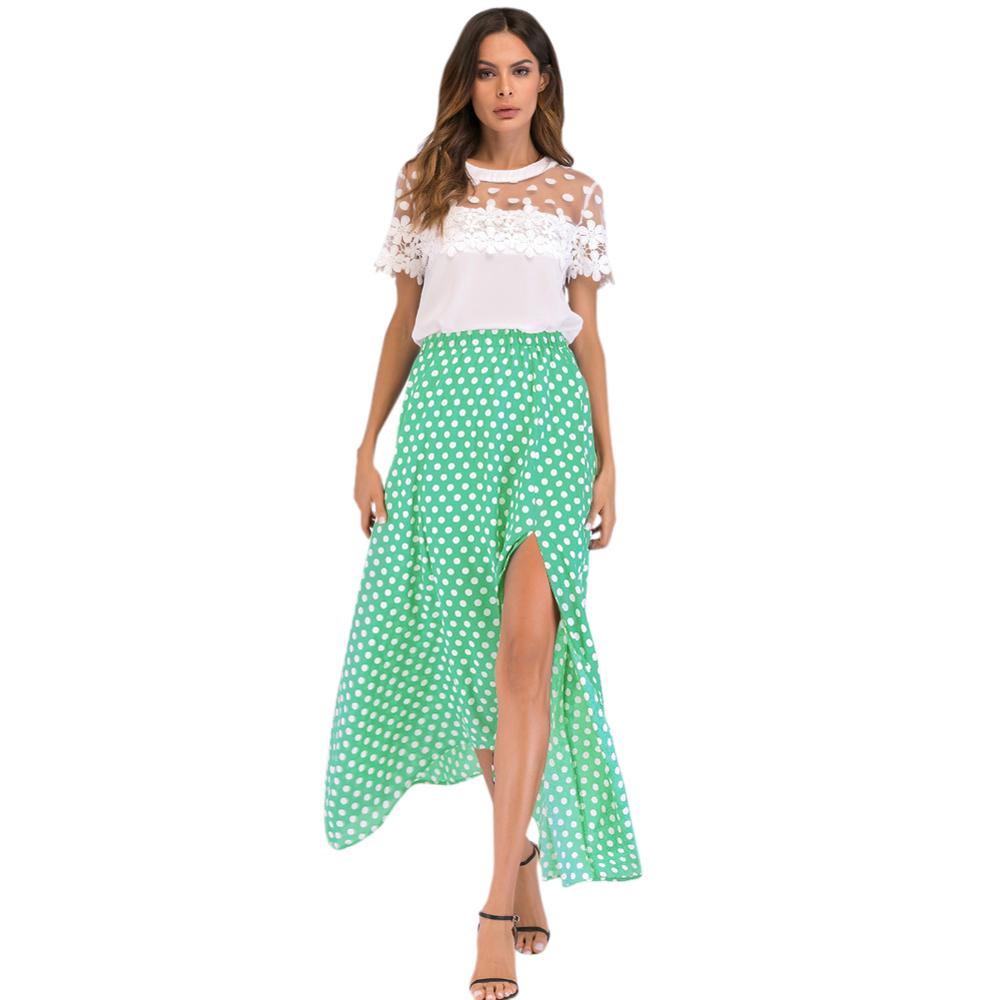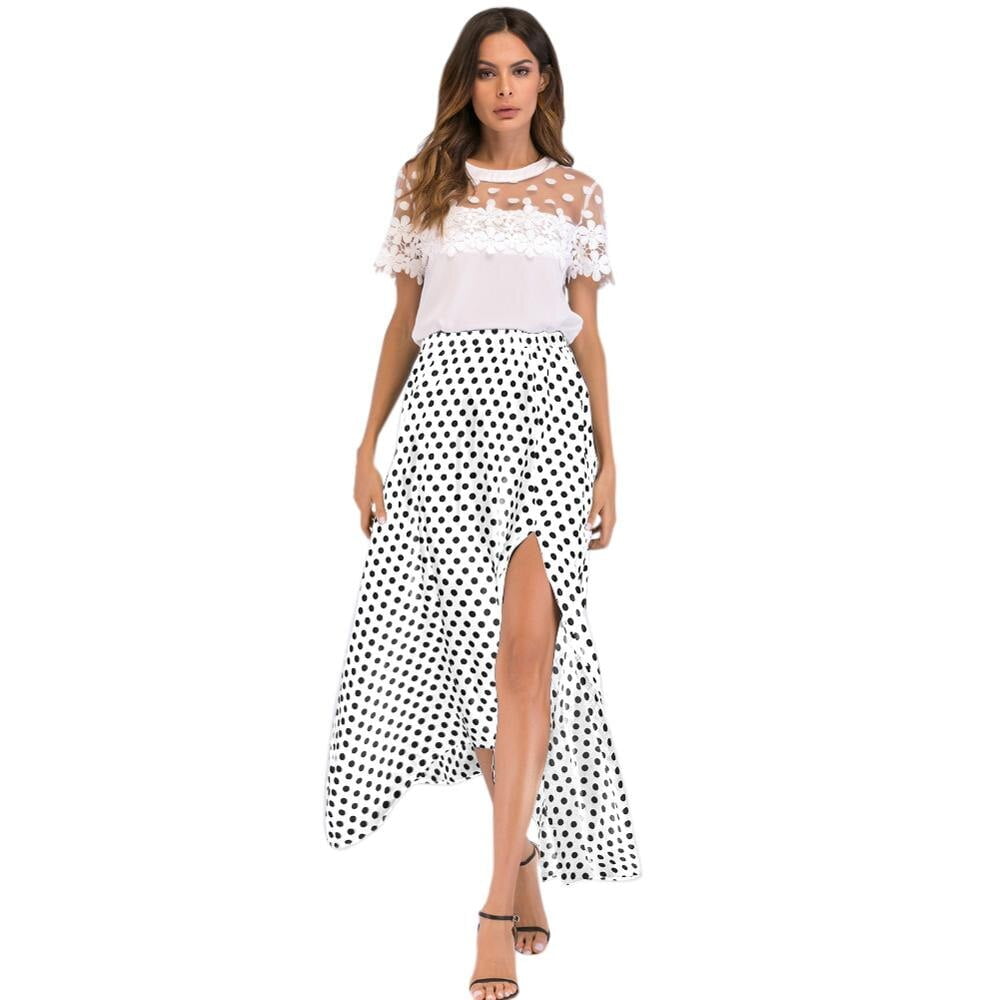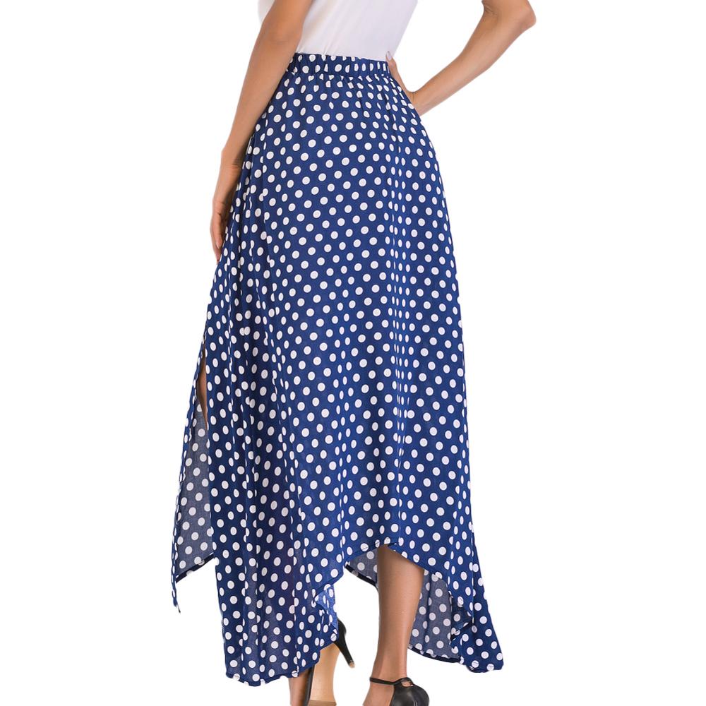 Caractéristiques de la Jupe Longue Pois Femme Fendue Asymétrique