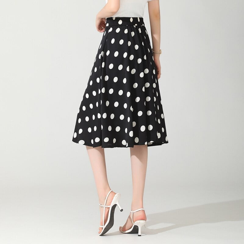 Choisissez cette Jupe Trapèze Pois Élégante Taille Haute si vous voulez faire tourner les têtes lors de votre prochain événement spécial ou simplement ajouter une touche chic à votre tenue quotidienne. 💃 Que ce soit pour un mariage, une cérémonie ou même au bureau, cette jupe sera toujours le choix parfait! Et n’oubliez pas que chaque femme mérite de se sentir belle et confiante dans sa peau!
