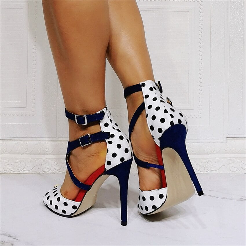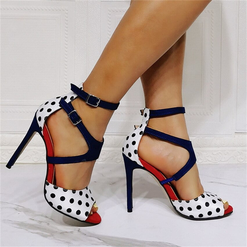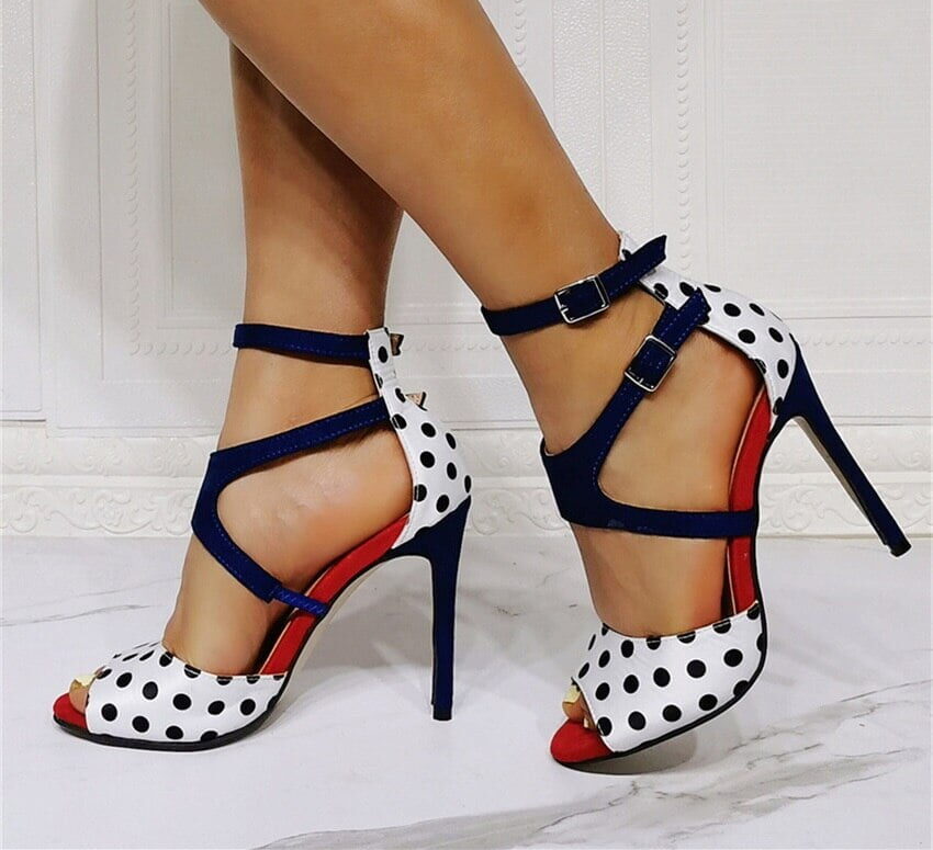 Ces sandales présentent une conception sophistiquée avec des talons hauts, ce qui vous permettra de marcher en toute confiance lors de vos événements spéciaux 🎉. Leur design est accentué par le motif à pois, ajoutant une touche féminine et chic. Fabriquées avec des matériaux de haute qualité, ces chaussures garantissent confort et durabilité.