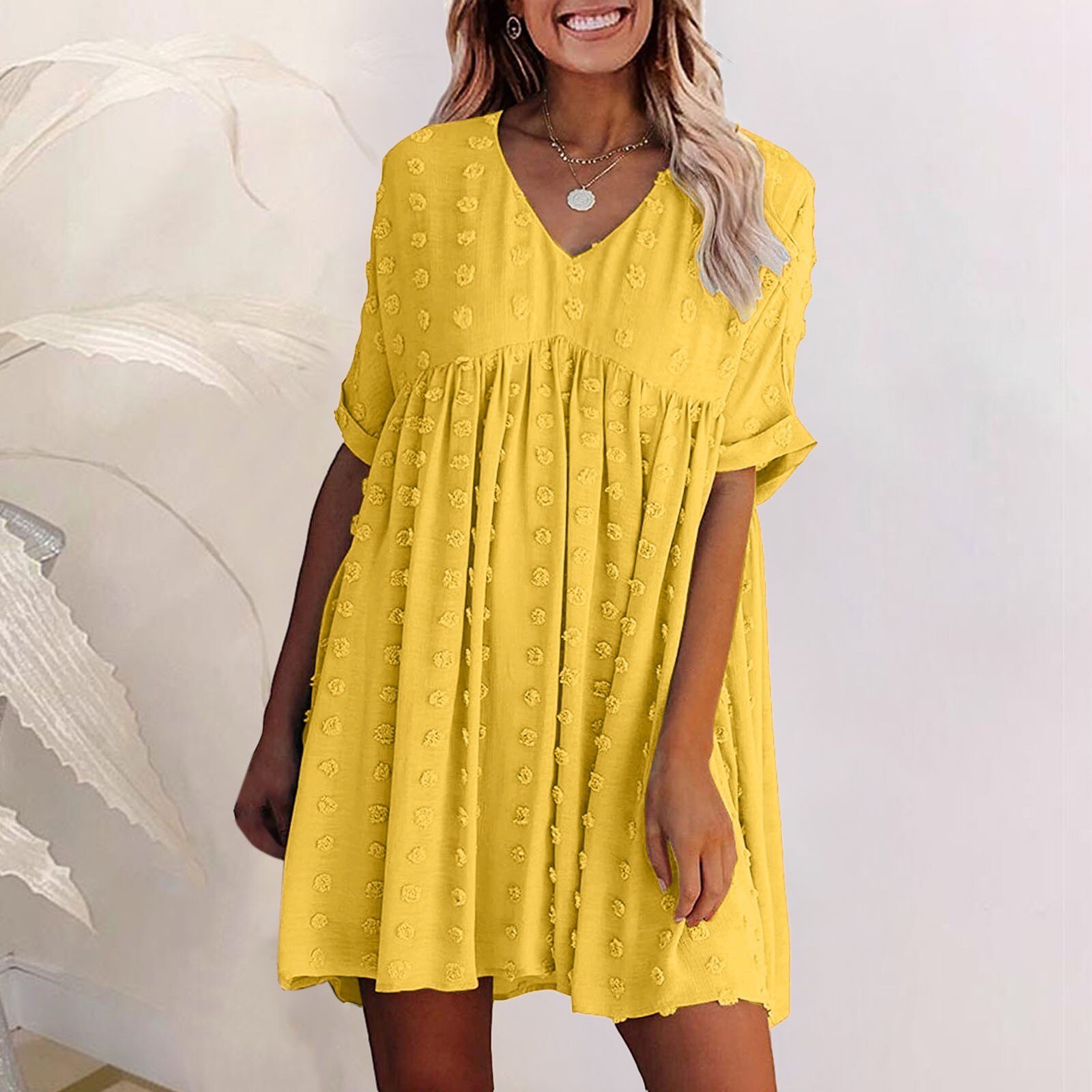 Facile à porter et encore plus facile à entretenir! Il suffit de la laver délicatement à la main ou en machine avec des couleurs similaires 🧺 . Et voilà! Votre Mini Robe Été Sexy Pois Femme est prête pour votre prochaine aventure fashionista!