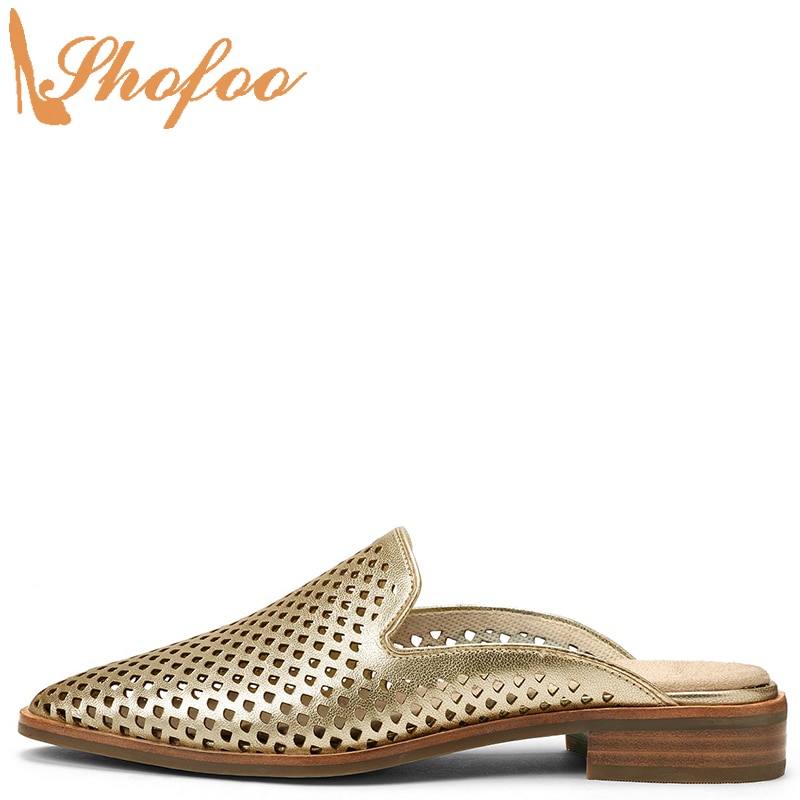 Les Mules À Pois Femmes Dorées Extérieur Perforées Uniques : un choix de style et d’élégance
