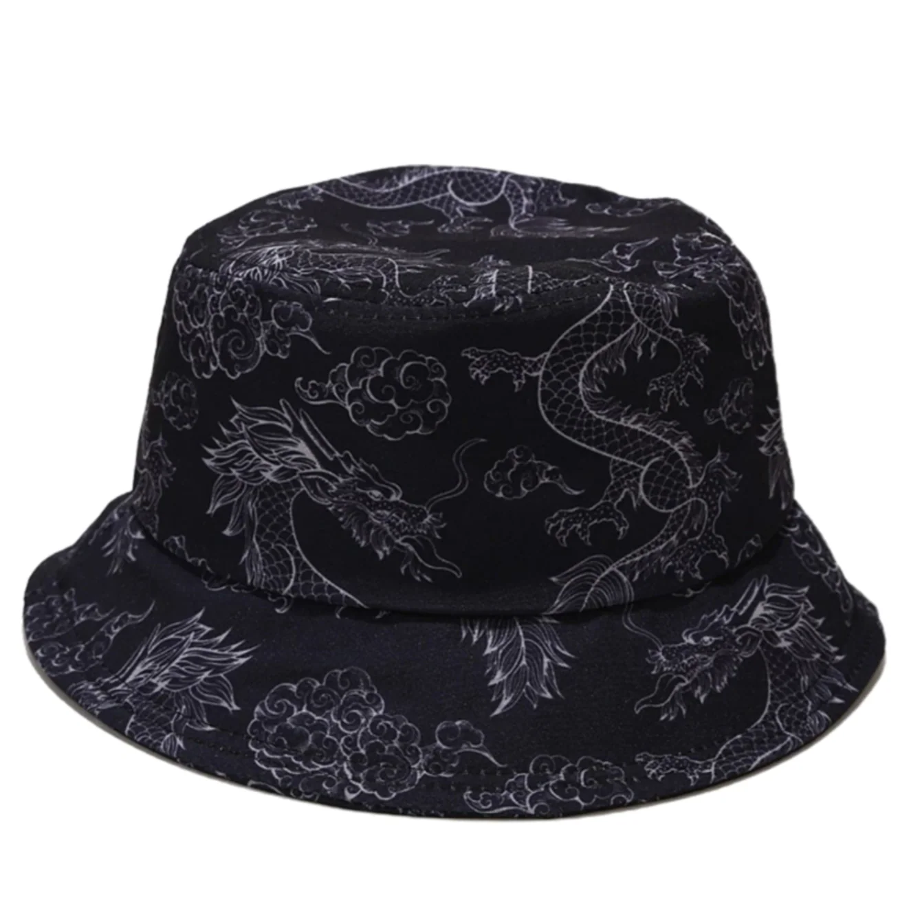 -Chapeau Bob Bleu Blanc Imprimé Nuages Streetwear