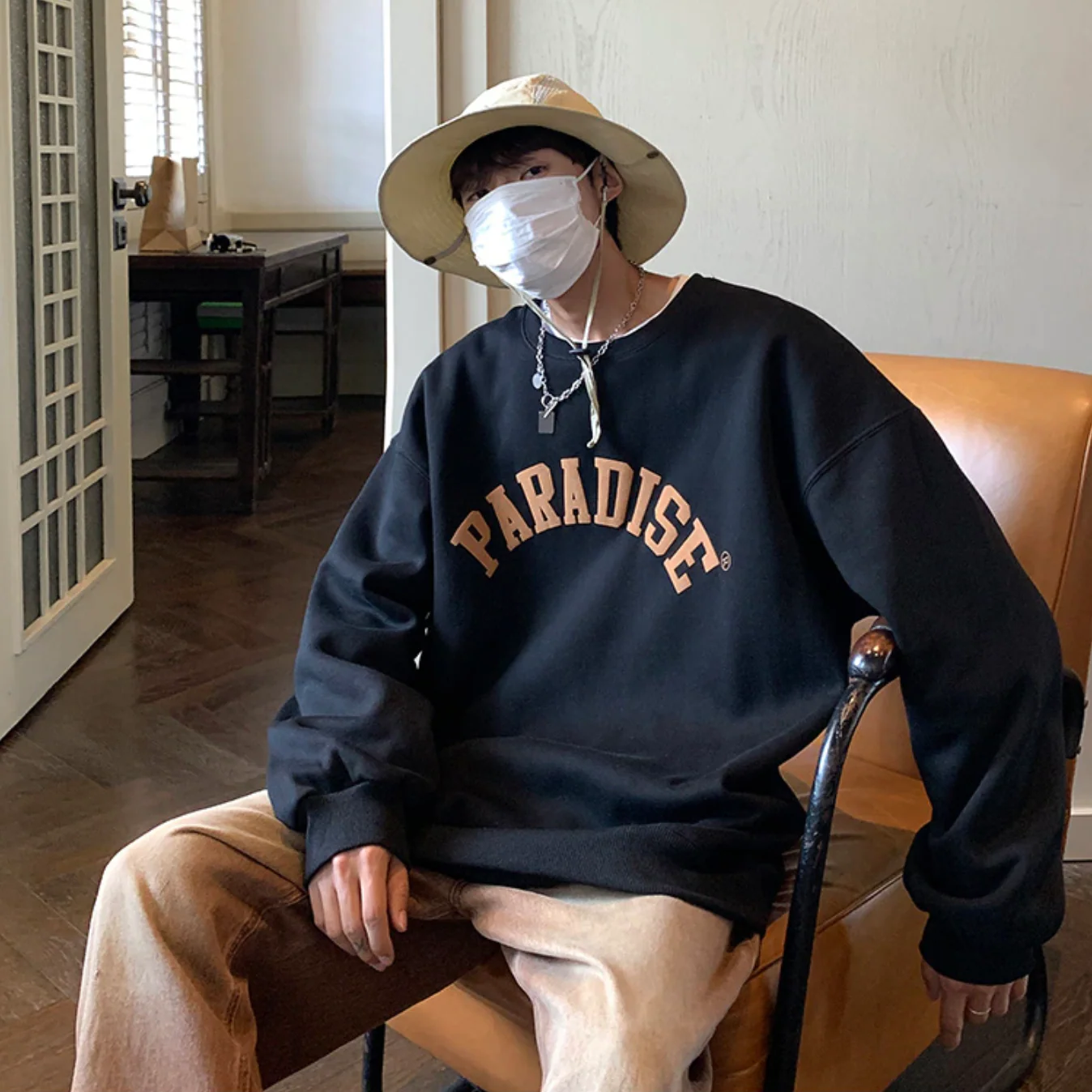 -Sweat-shirt Hoodie Large Oversize Vintage Imprimé Noir
