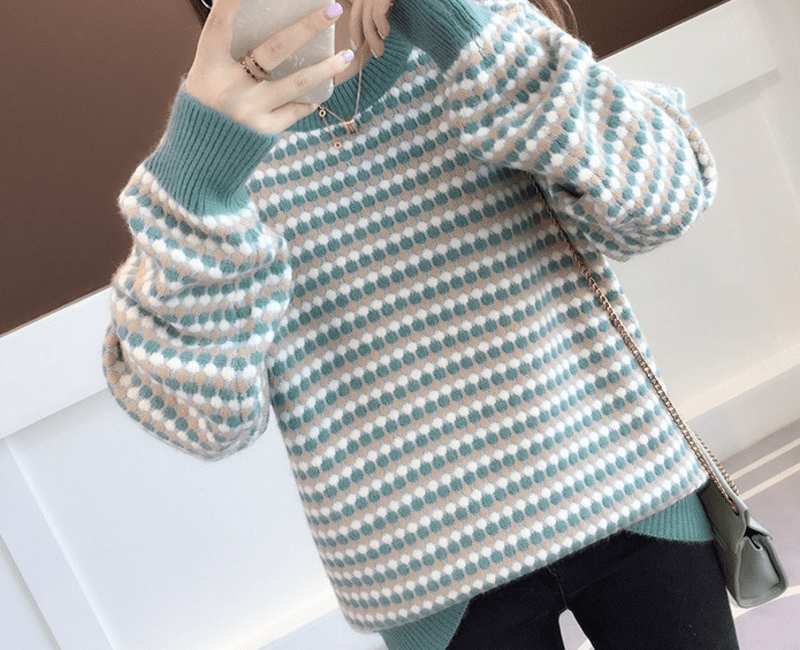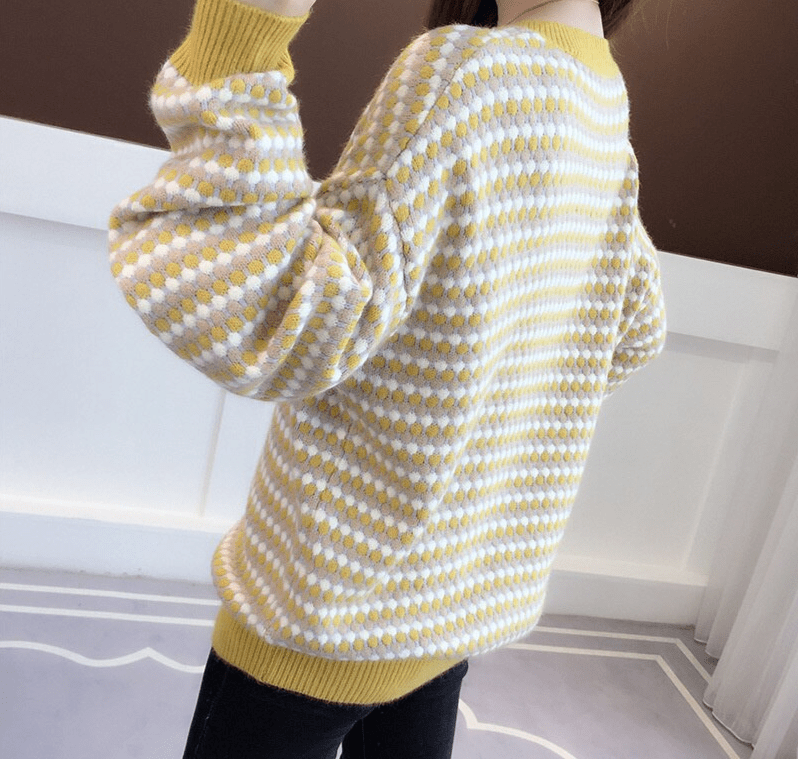 Fabriqué avec soin, ce pull est conçu pour les femmes qui apprécient la qualité et le confort.🔥🥇 Sa composition en vrac et coréen en fait un vêtement idéal pour toutes les saisons. Les rayures ajoutent une touche de style intemporel, tandis que le motif à pois sur le fond apporte une touche de modernité.