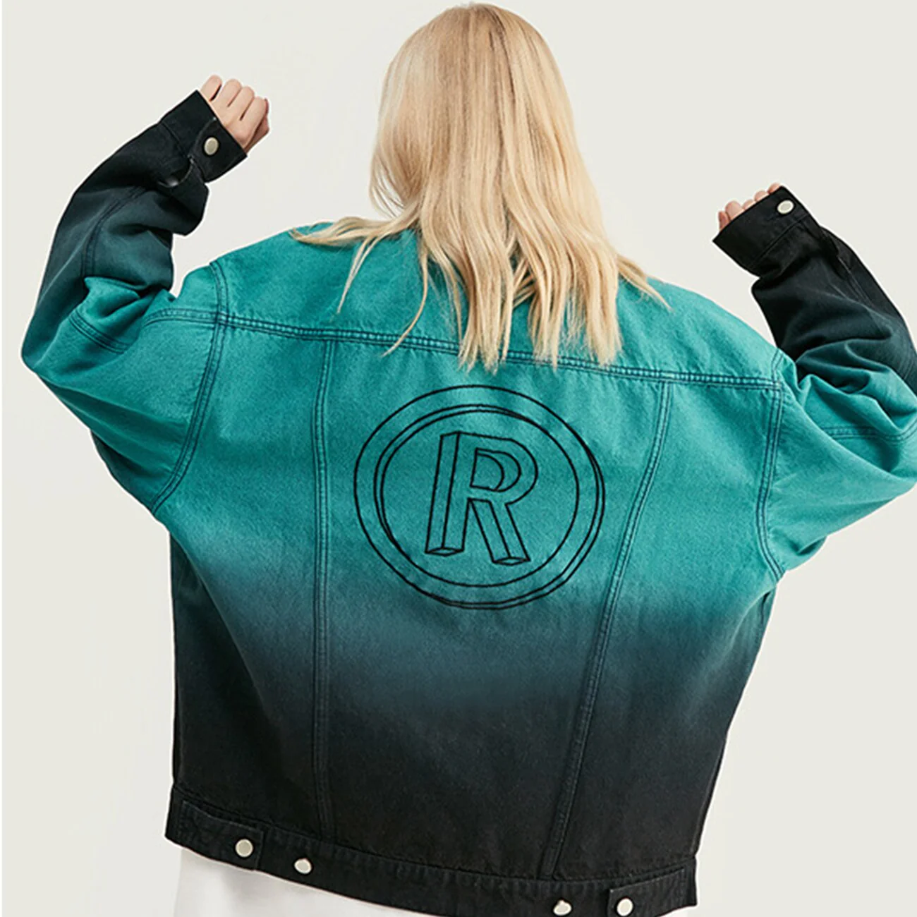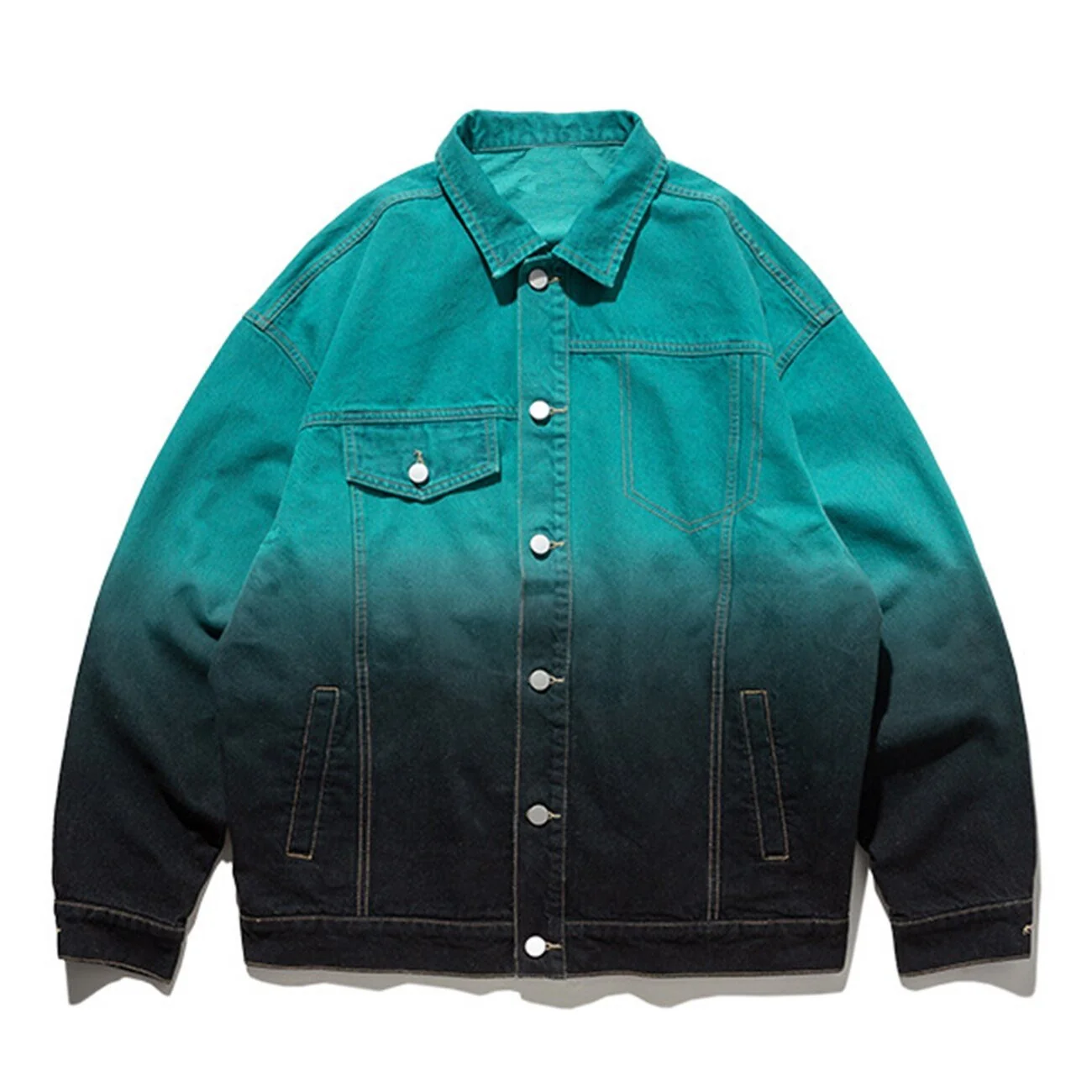 -Blouson Veste en jean denim Vert Bleu turquoise dégradé streetwear