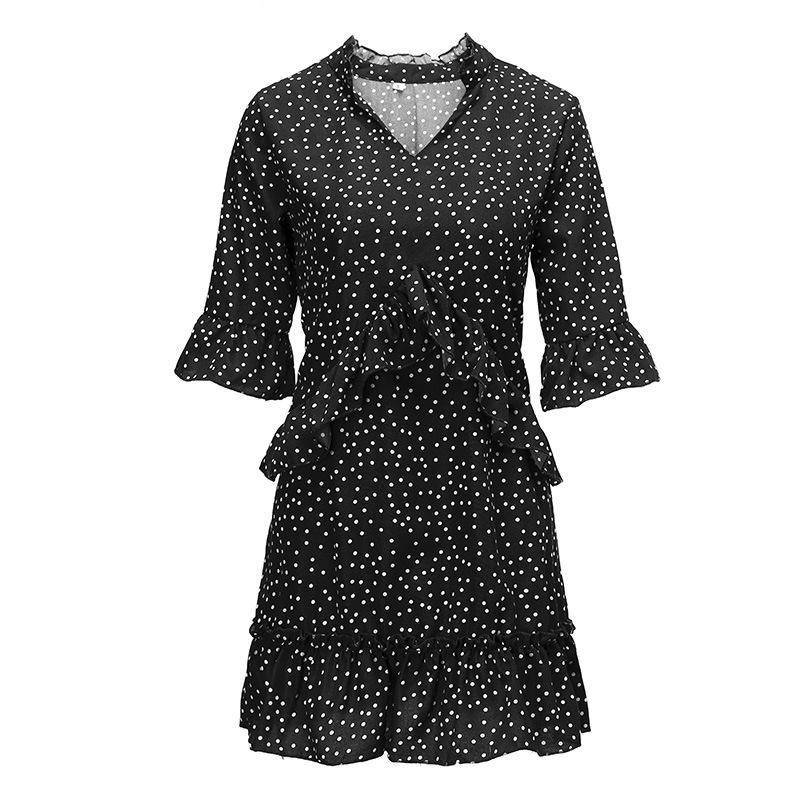 La robe à pastilles avec fente est l’un des styles de tenues très tendance cette année. 💛 En fait, de trop nombreux internautes et certaines expertes de la tendance conseillent d’en avoir une dans sa garde-robe et ceci n’est pas banal. En effet, avant d’être à pois, celle-là est d’abord une robe, un segment inéluctable du quotidien féminin. Ensuite, le fait la Robe a pois courte grande taille intègre des pois la rend carrément plus spéciale, car c’est une mode qui ne fait que ressusciter. 🧐 Si vous vous demandez pour vraiment être tendance cette année quel genre de robe tendance à pois il vous faut, donc, pariez sur notre robe de cocktail courte à pois blanc, cette dernière est la grande championne.