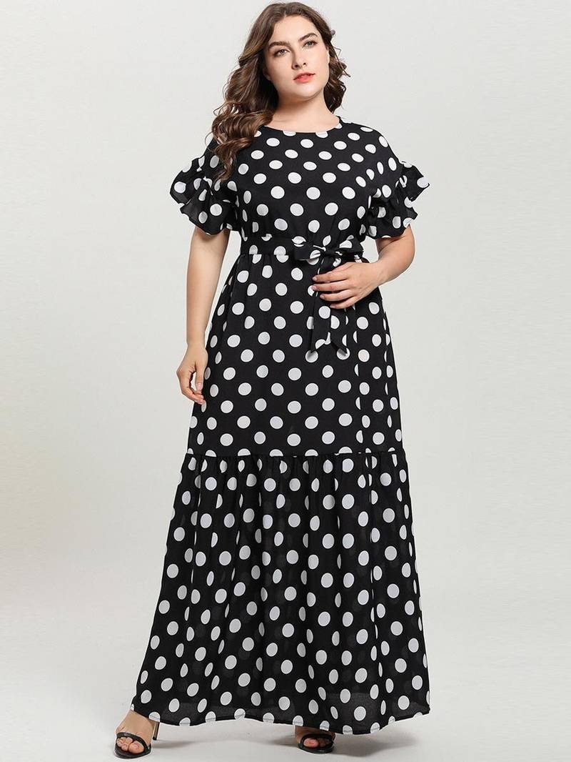Robe a pois grande taille longue noir femme : pour être libre au printemps
