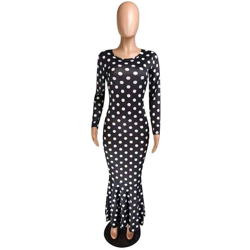 Une Robe a pois grande taille longue trompette qui s’adapte à toutes les formes