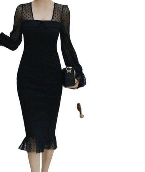 Une Robe a pois grande taille noire dentelle qui s’adapte à toutes les morphologies