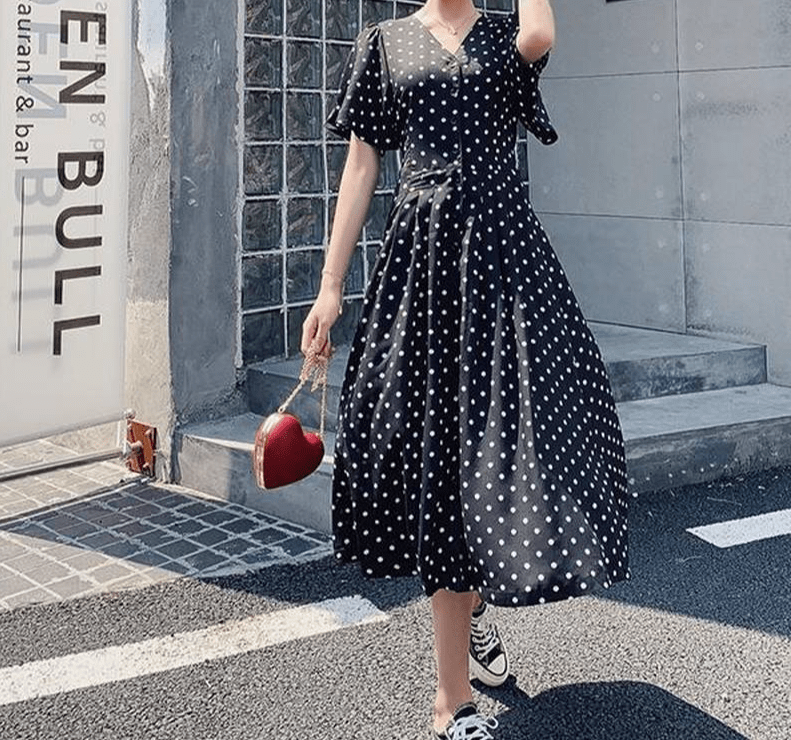 De gros pois ne sont pas recommandés pour les ladies aux larges hanches, les petits pois par contre sont plus recommandés dans ce cas. La robe à pois courte à peu près aussi old school que la robe à pois elle-même, le style short était considéré comme la marque de la féminité d’une dame. ❤ Il demeure, ce prototype de robe à pois a pour la globalité une taille notée et bien souvent un bandeau pour plus d’aisance. La robe à pois courte est essentiellement revêtue pour des assemblées chics, mais aussi des baptêmes. Robe a pois grande taille nuisette longue en soie peut aussi être pratiquée pour des balades en saison printemps. 🌞