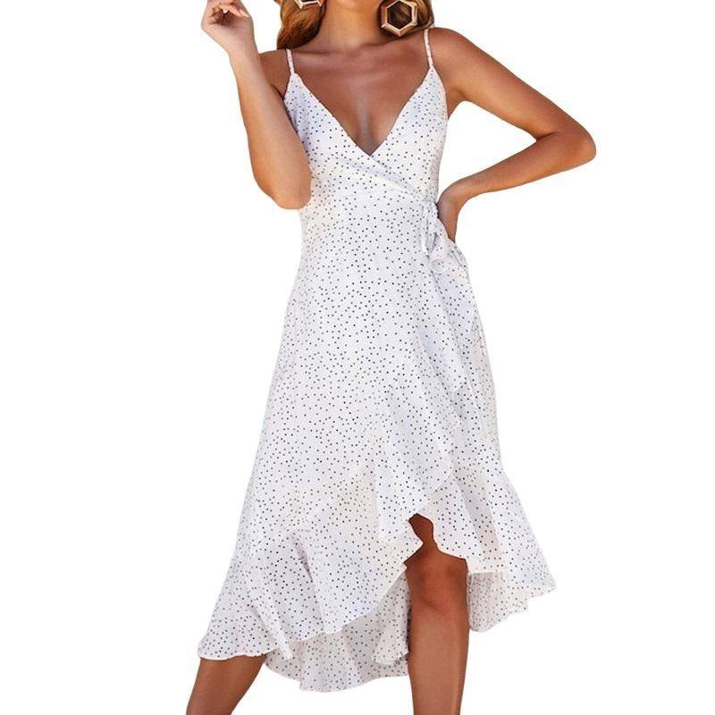 Une Robe boheme a pois chemisier blanc dos nu sans manche qui s’acclimate à toutes les morphologies
