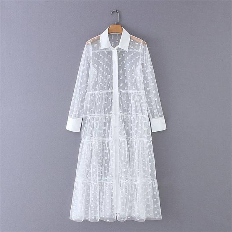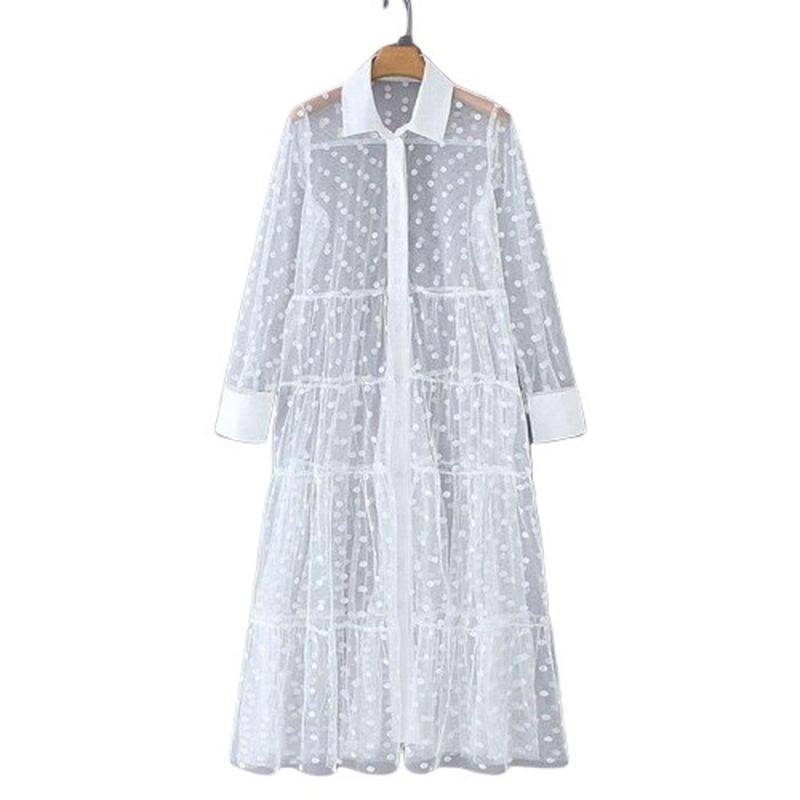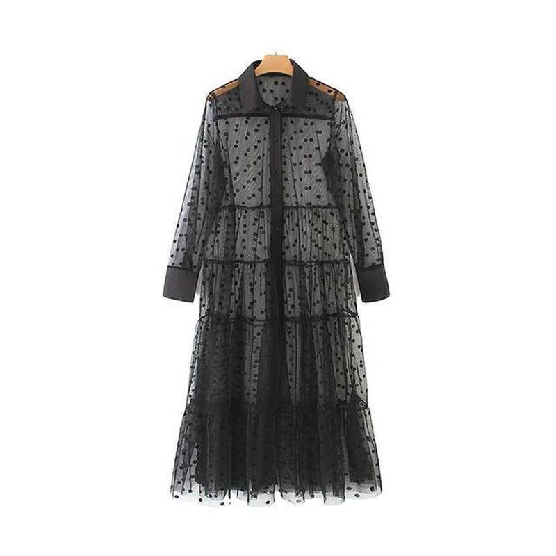 Une fête, et si vous goûtiez une Robe longue a pois chemise femme ?