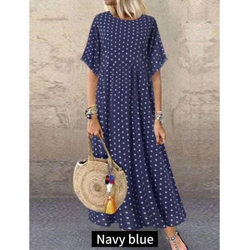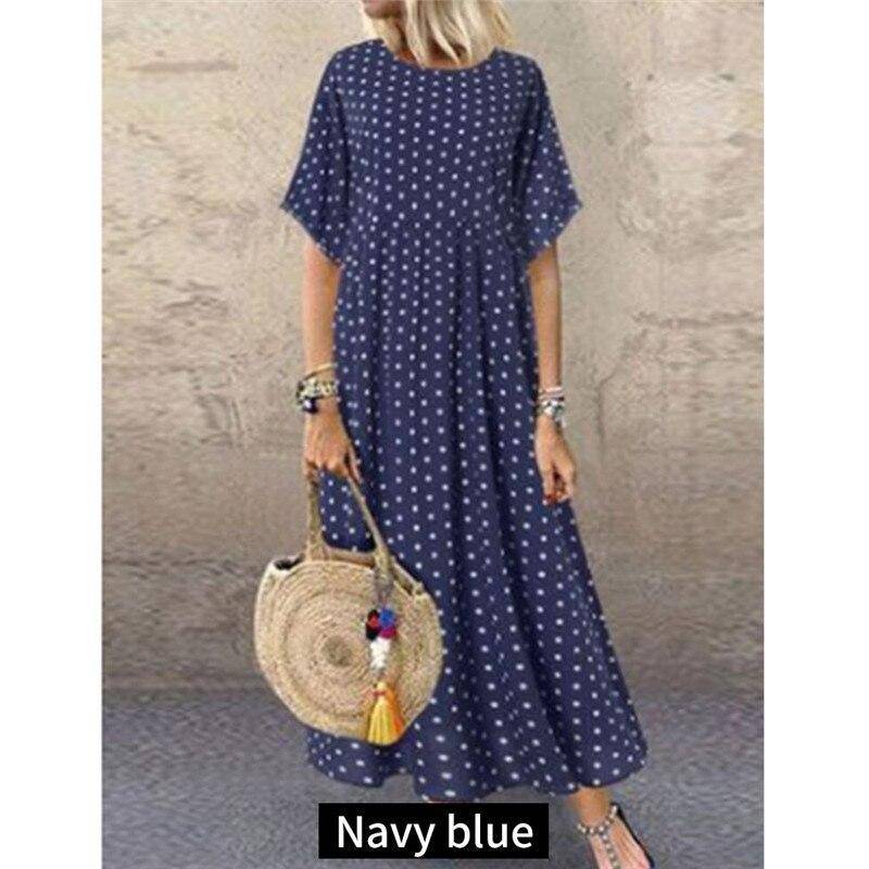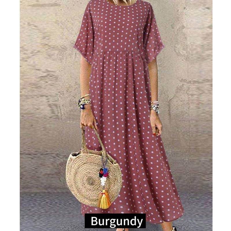 Une Robe longue a pois simple qui s’acclimate à toutes les morphologies