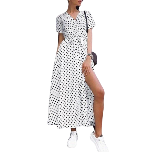 Vos Exigeances pour votre Robe Longue Fendue Blanche à Pois :