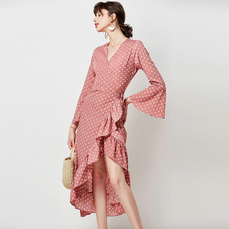Grace à un confèctionnage formidable et conforme, votre Robe Longue Rose à Pois Blancs est un must-have pour passionnés des pois colorés.