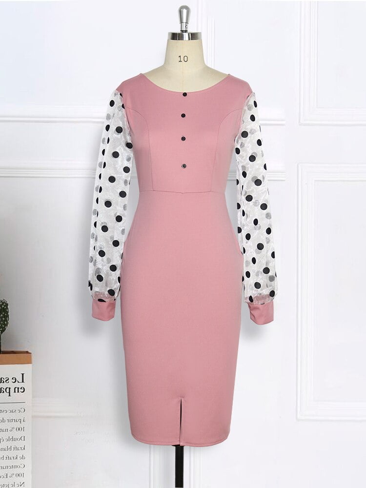 Vous cherchez une robe élégante pour votre prochaine occasion spéciale ou pour le bureau ? Ne cherchez pas plus loin, notre Robe en maille transparente pour femmes, col rond, Patchwork, manches longues, à pois, classe, élastique, élégante, bureau, modeste, femme africaine est le choix parfait pour vous. 😊