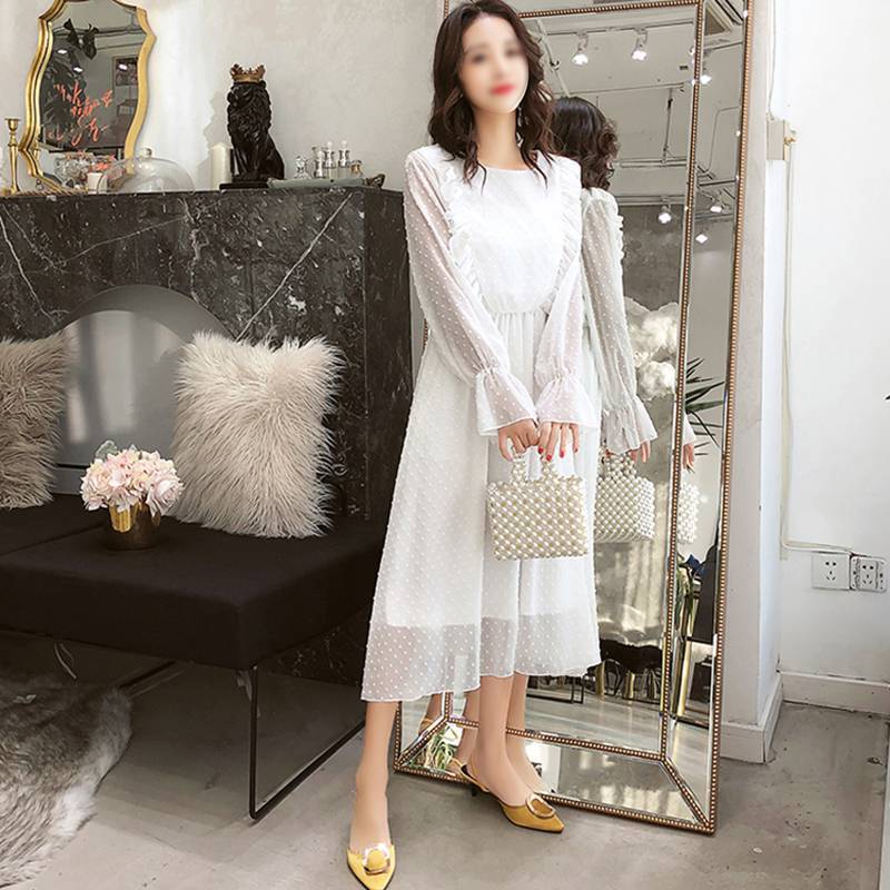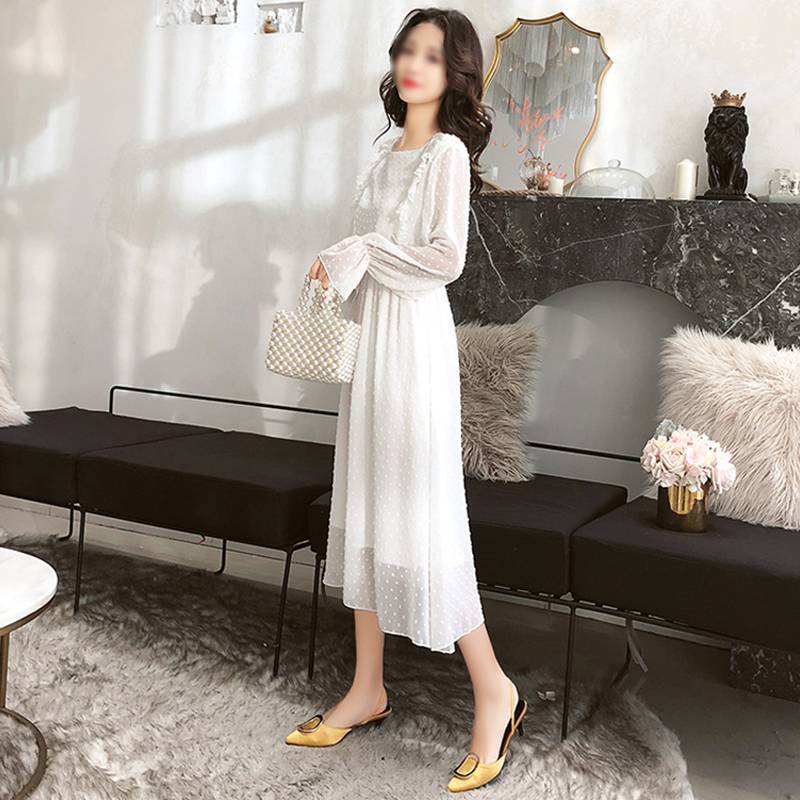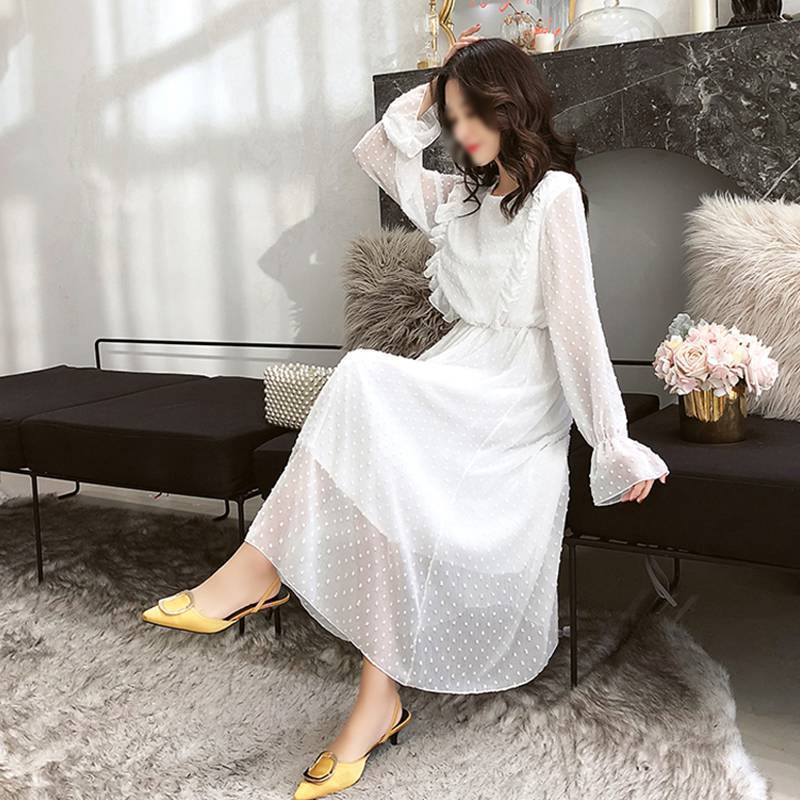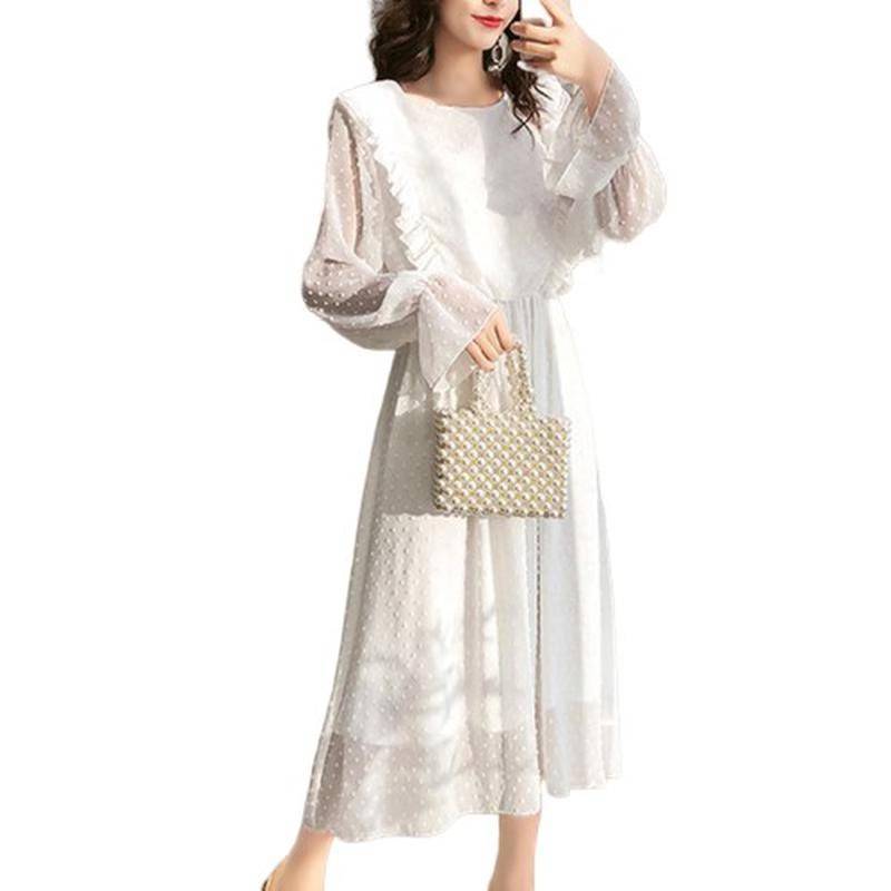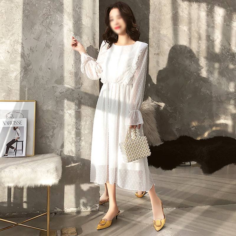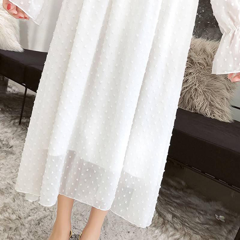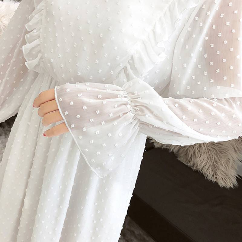 Une soirée, et si vous essayez une Robe manche longue a pois chemisier femme mousseline de soie ?