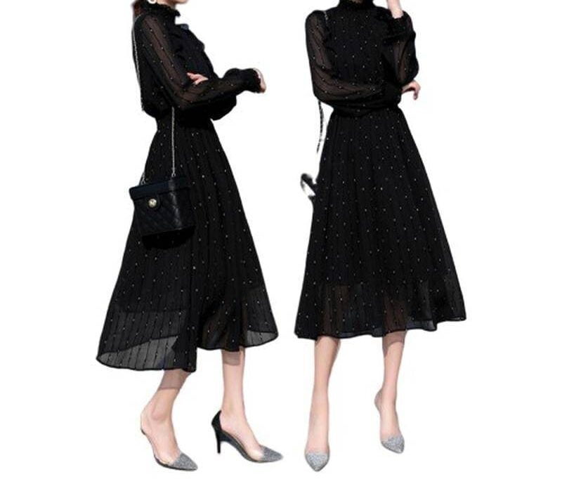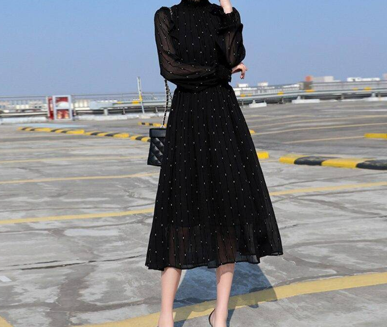 Une Robe manche longue a pois noire qui s’acclimate à toutes les formes