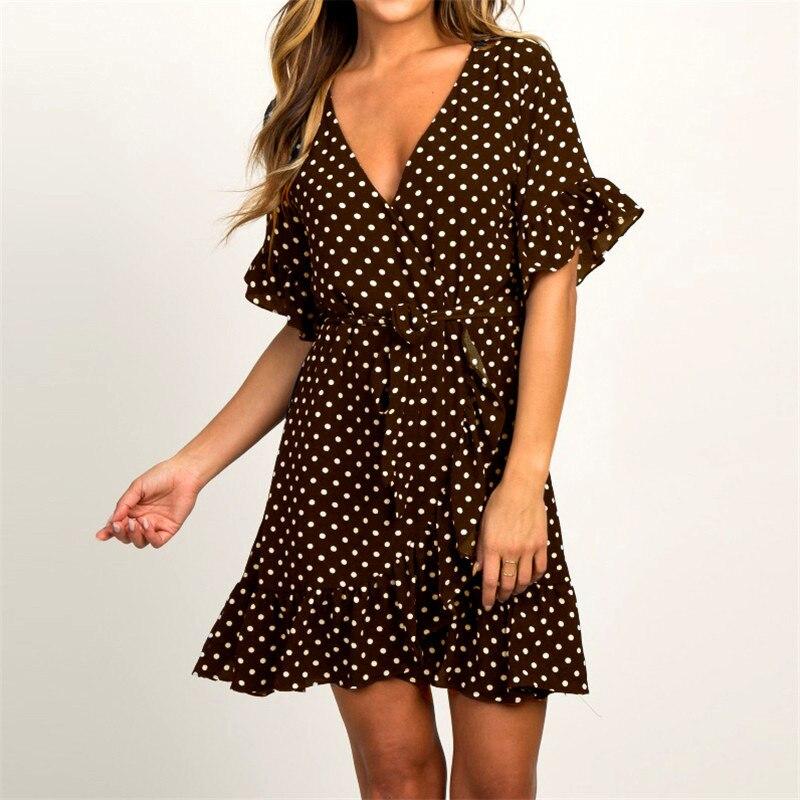 Objectifs Qualités de notre Robe Marron à Pois Blanc Courte :
