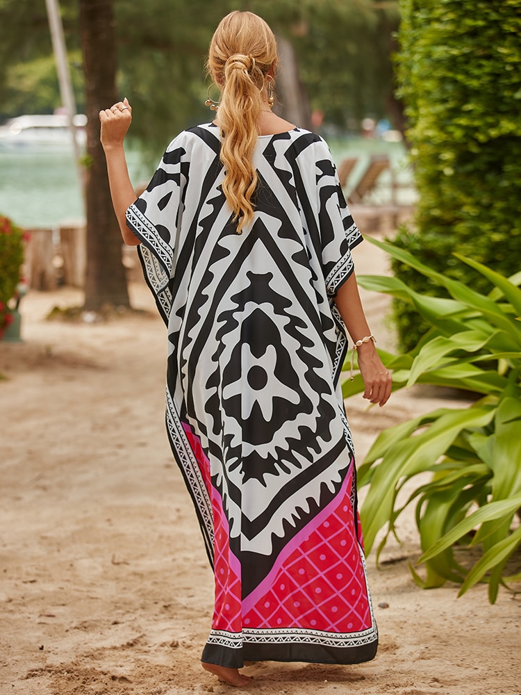 Ajoutez cette robe Maxi Col V Femme Bohème Plage Motifs Pois à votre collection de pareos à motifs à pois. Son design intemporel et sa qualité exceptionnelle en font un choix idéal pour les femmes élégantes et sophistiquées.