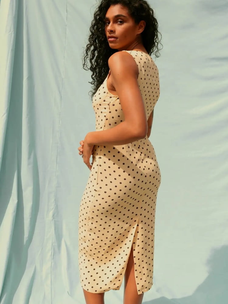 En plus de son design, cette robe mi-longue décontractée à pois offre une coupe flatteuse pour toutes les morphologies. 😊 La taille est légèrement cintrée pour mettre en valeur votre silhouette, tandis que la longueur mi-longue est idéale pour allonger vos jambes. Vous vous sentirez belle et à l’aise dans cette robe.