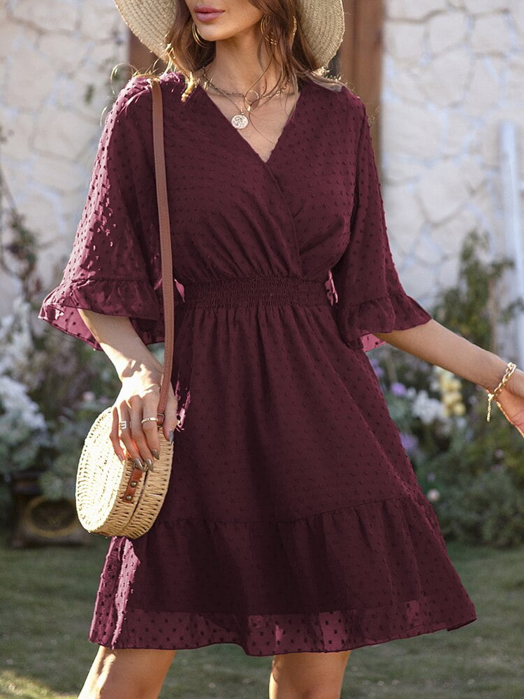 Notre Robe Mi-Longue Mousseline Pois Femme n’est pas seulement belle – elle est aussi extrêmement polyvalente! Que vous soyez invitée à un mariage ou que vous cherchiez simplement quelque chose de spécial pour une sortie entre filles, cette robe sera votre alliée parfaite.